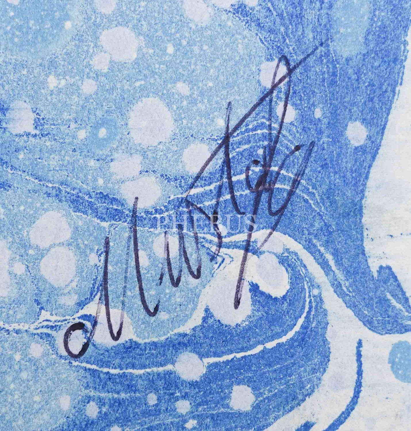 Mustafa Düzgünman imzalı ebru, 49x33 cm...