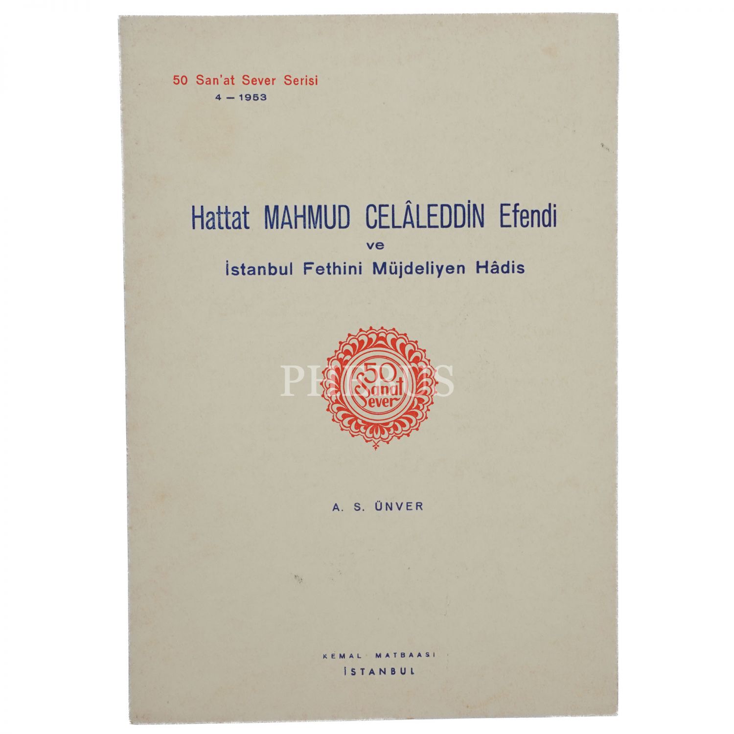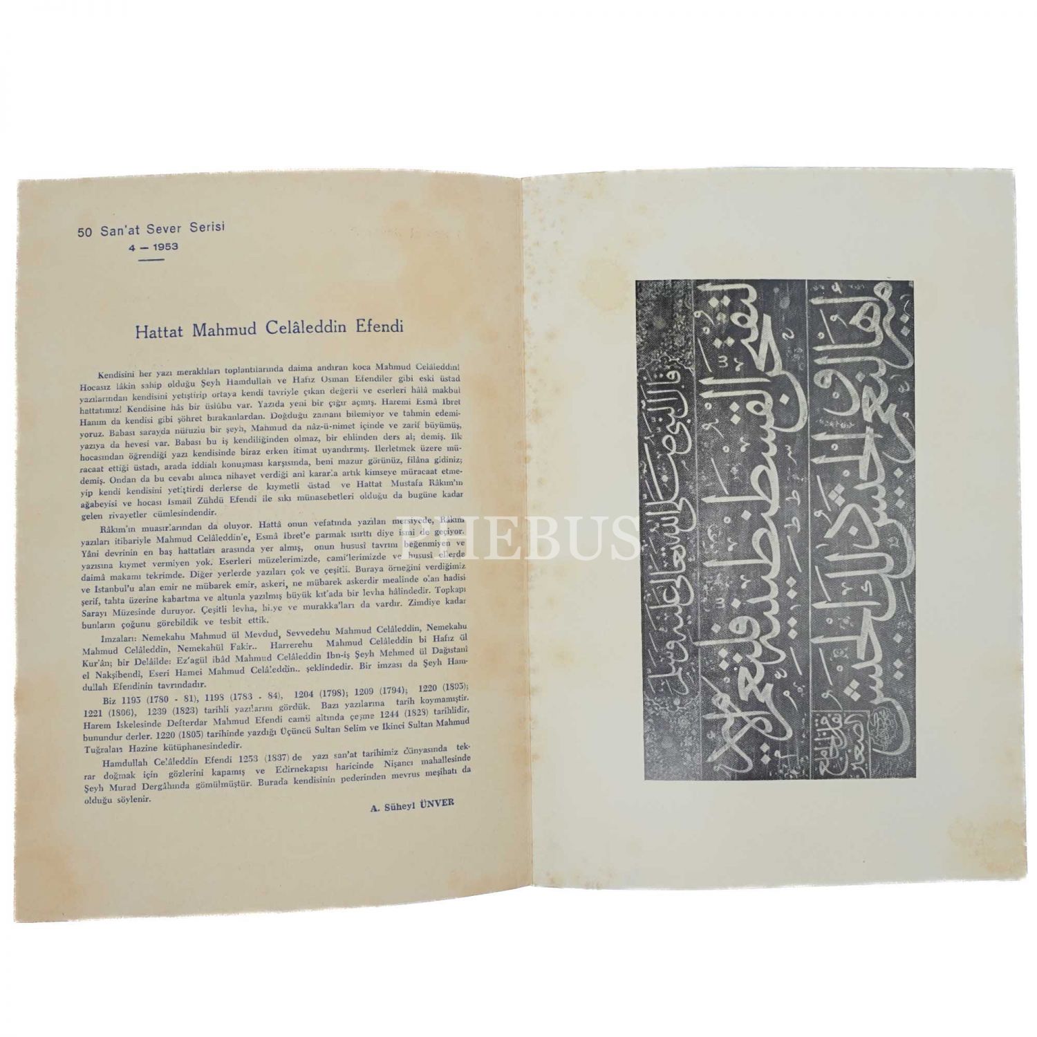 HATTAT MAHMUD CELALEDDİN EFENDİ VE İSTANBUL FETHİNİ MÜJDELİYEN HADİS, Süheyl Ünver, 1953, Kemal Matbaası, 2 sayfa, 24x17 cm...