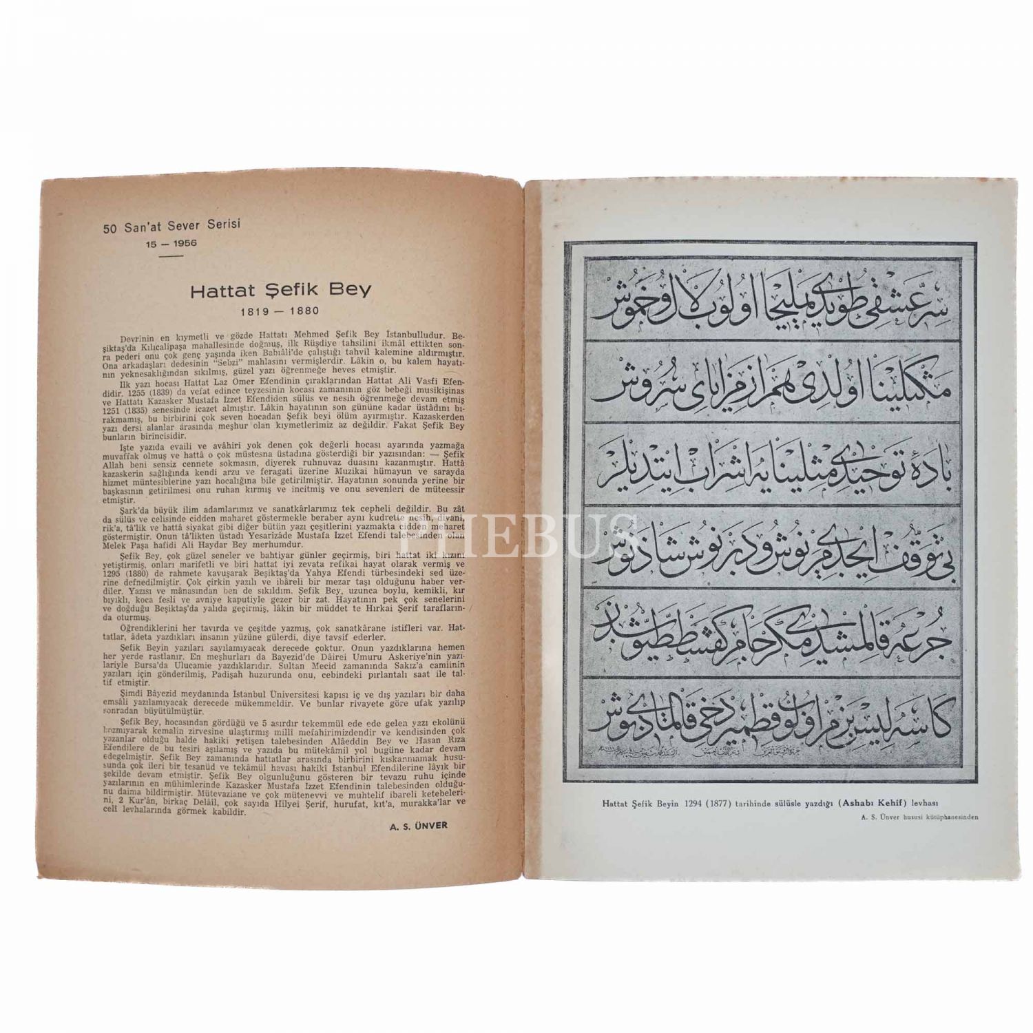 HATTAT ŞEFİK BEY HATAYI VE ESERLERİ, Süheyl Ünver, 1956, Kemal Matbaası, 2 sayfa, 24x17 cm...