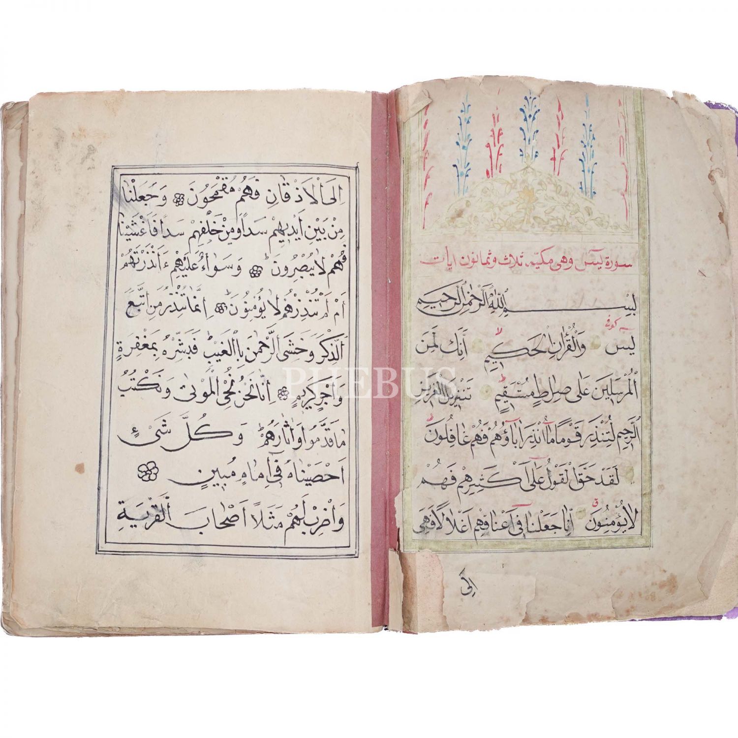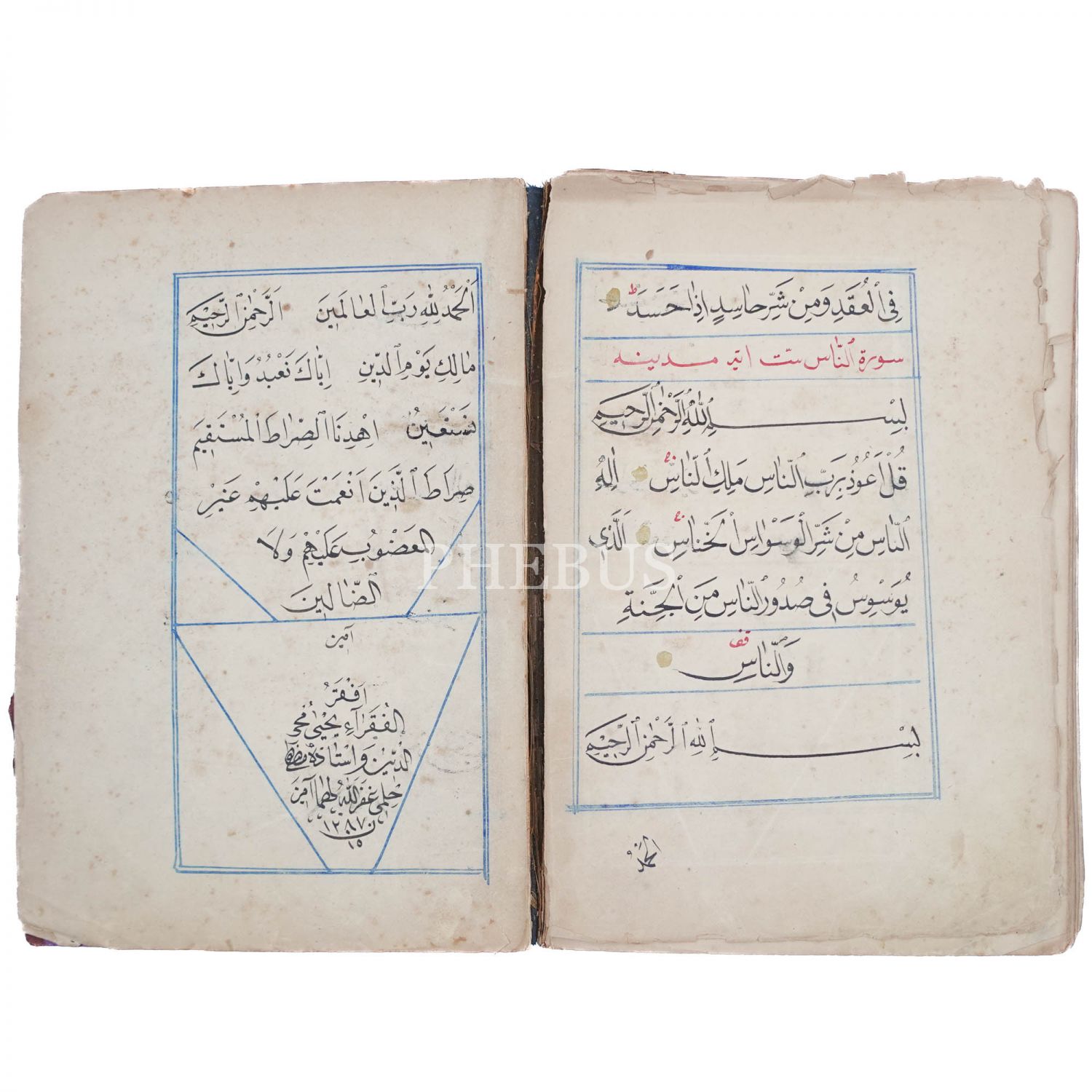 Mustafa Hilmi Efendi´nin talebesi Yahya Muhyiddin ketebeli Yasin Suresi´nden Nas Suresi´ne kadar yazılmış Kur´an-ı Kerim, 1287 tarihli, 374 sayfa, 18x24 cm...