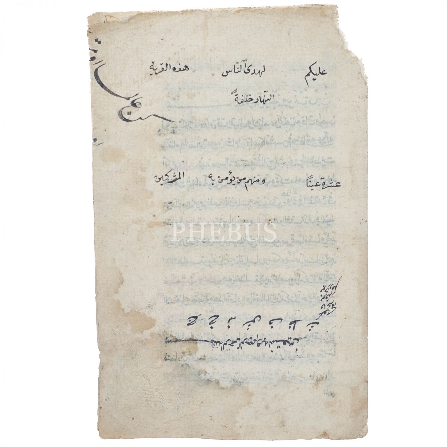 Mukantarat (Astronomik ve mimari ölçüm) Risalesi, Arapça, 6 sayfa, 20x13 cm...