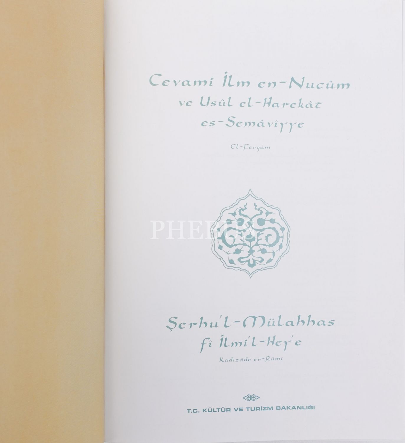 CEVAMİ İLM EN-NÜCUM VE USUL EL-HAREKAT ES-SEMAVİYE, El-Fergânî. ŞERHU´L-MÜLAHHAS Fİ İLMİ´L-HEY´E, Kadızade er-Rûmî, T.C. Kültür ve Turizm Bakanlığı, 560 sayfa, kutulu, 21x15 cm...