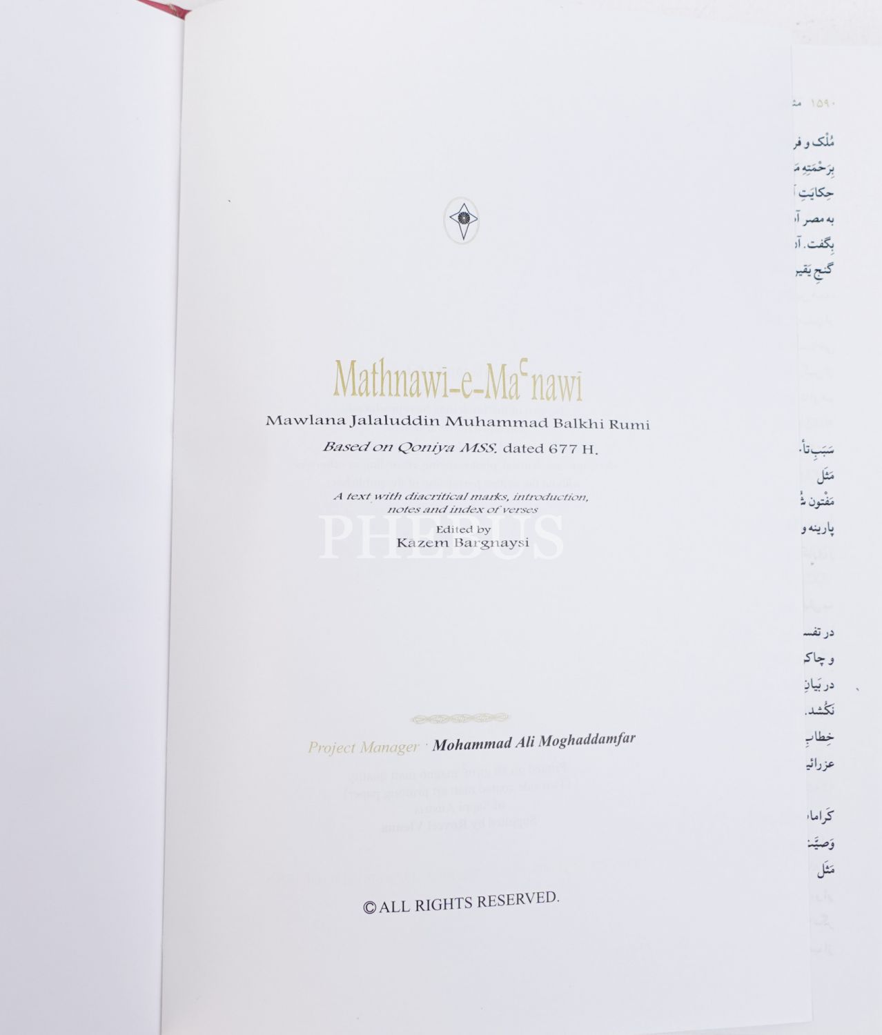 Mevlana´nın ölümsüz eserinin dizgi yapılı basılmış nüshasıdır. Tıpkıbasım değildir.