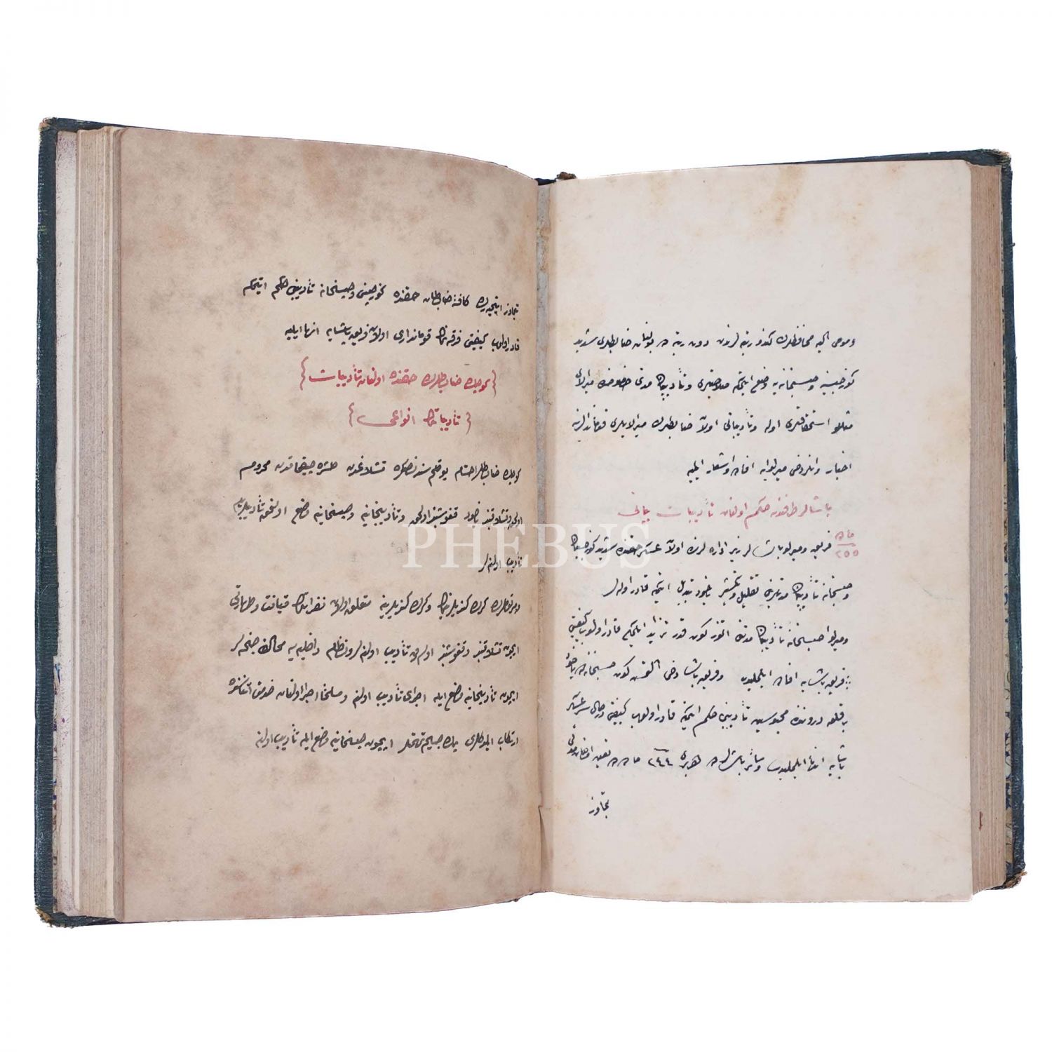Elle yazılarak kopyalanmış Askeri Kanunlar Mecmuası, şık bir yeşil cilt içinde okunaklı bir rika yazı ile yazılmıştır, 240 sayfa, 18x11 cm...