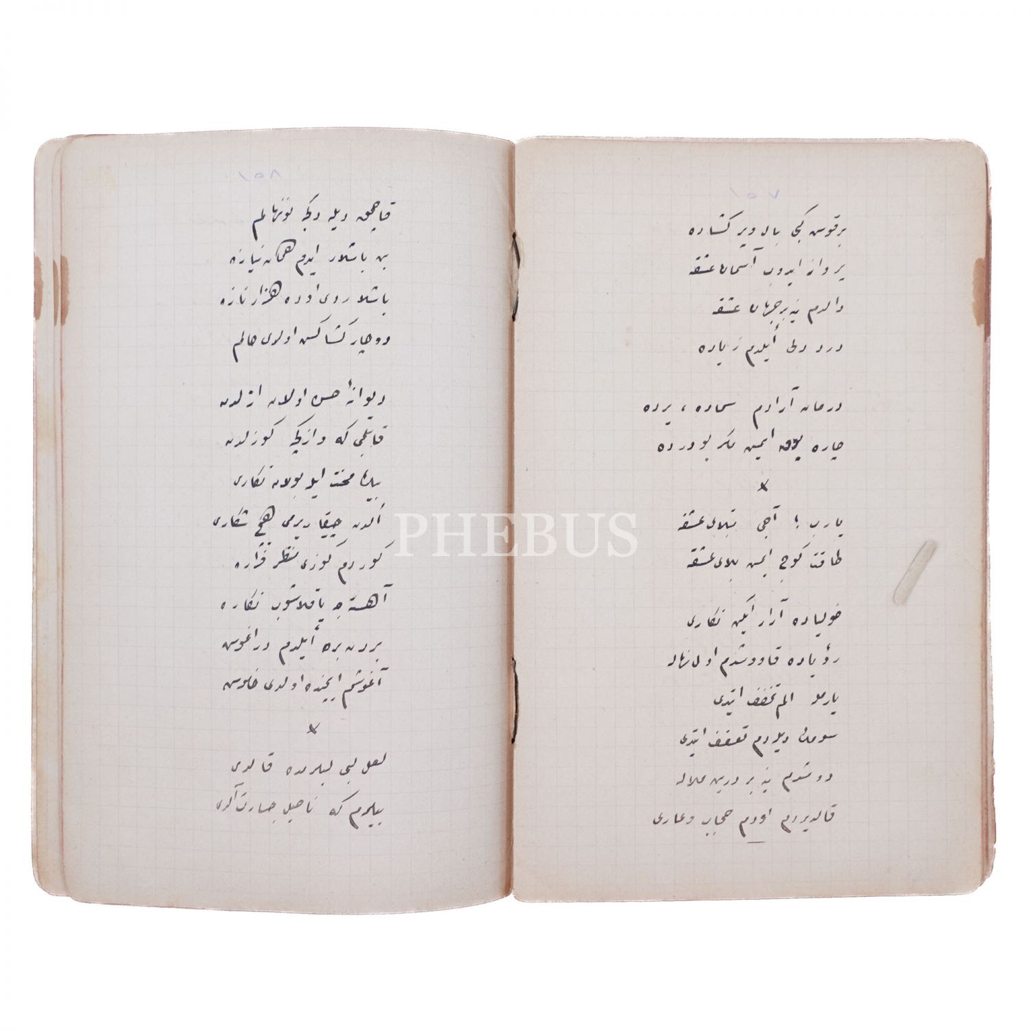 Osmanlı dönemi şiir defteri, çok sayıda divan şiiri yazılı, okunaklı bir rika yazı ile yazılmış, 250 sayfalık defterin tamamına yakını dolu, ciltsiz, 15x10 cm...