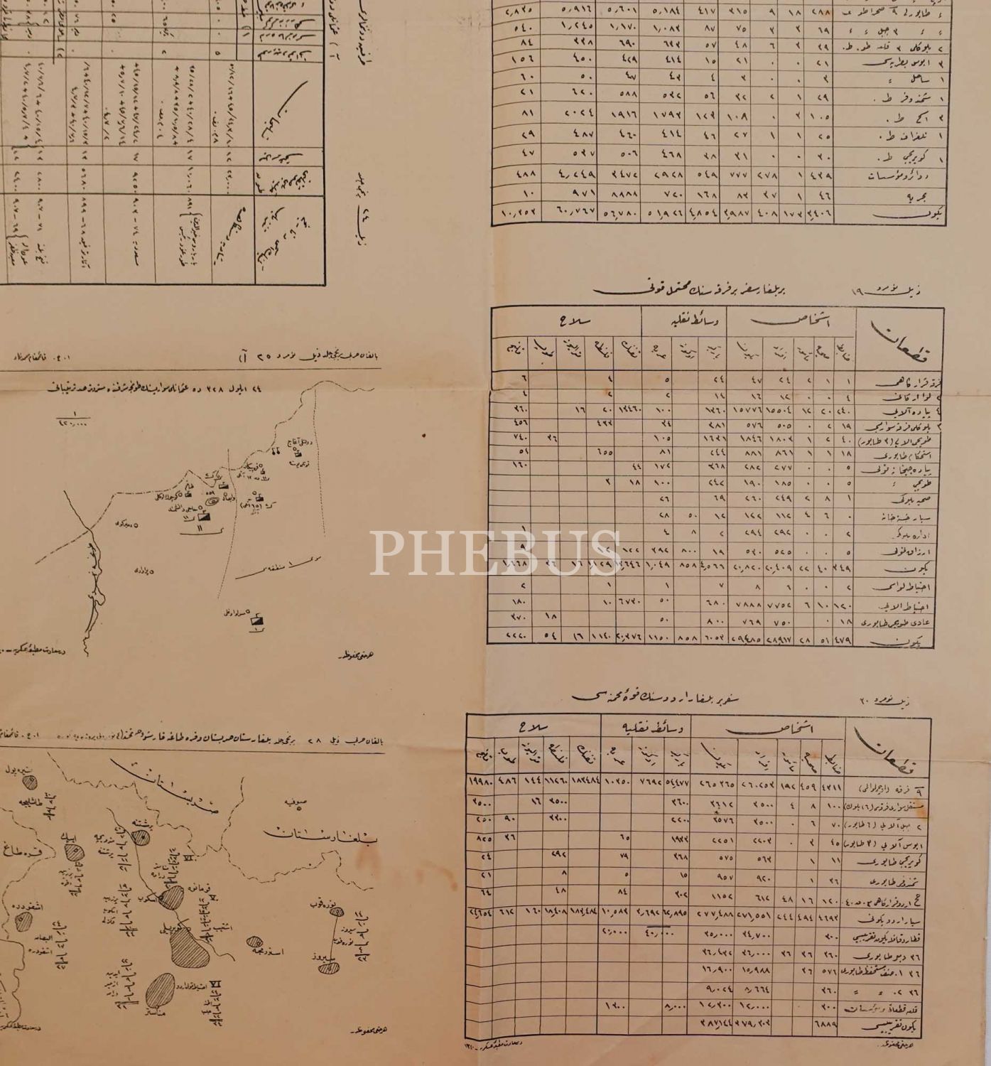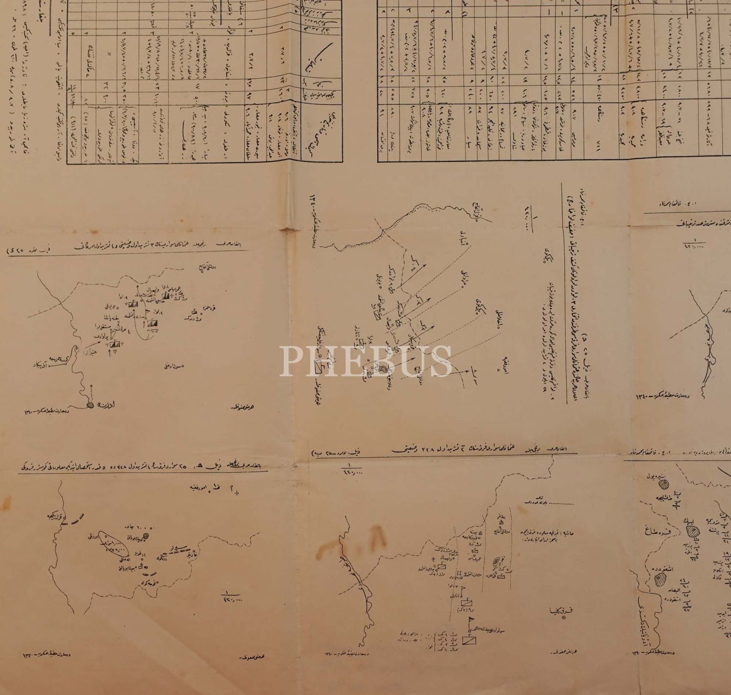 Balkan Harbi yıllarında Bulgar ordusunun durumunu gösteren Osmanlıca çizelge ve krokiler, 57x82 cm...