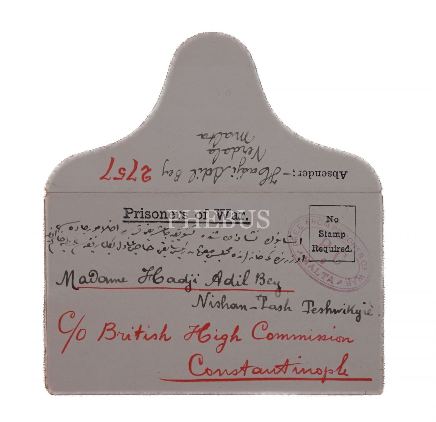 Edirne Valisi Hacı Adil Arda Bey´in, Malta´da esirken eşine yolladığı el yazısı mektup, (açık halde) 15x35 cm...