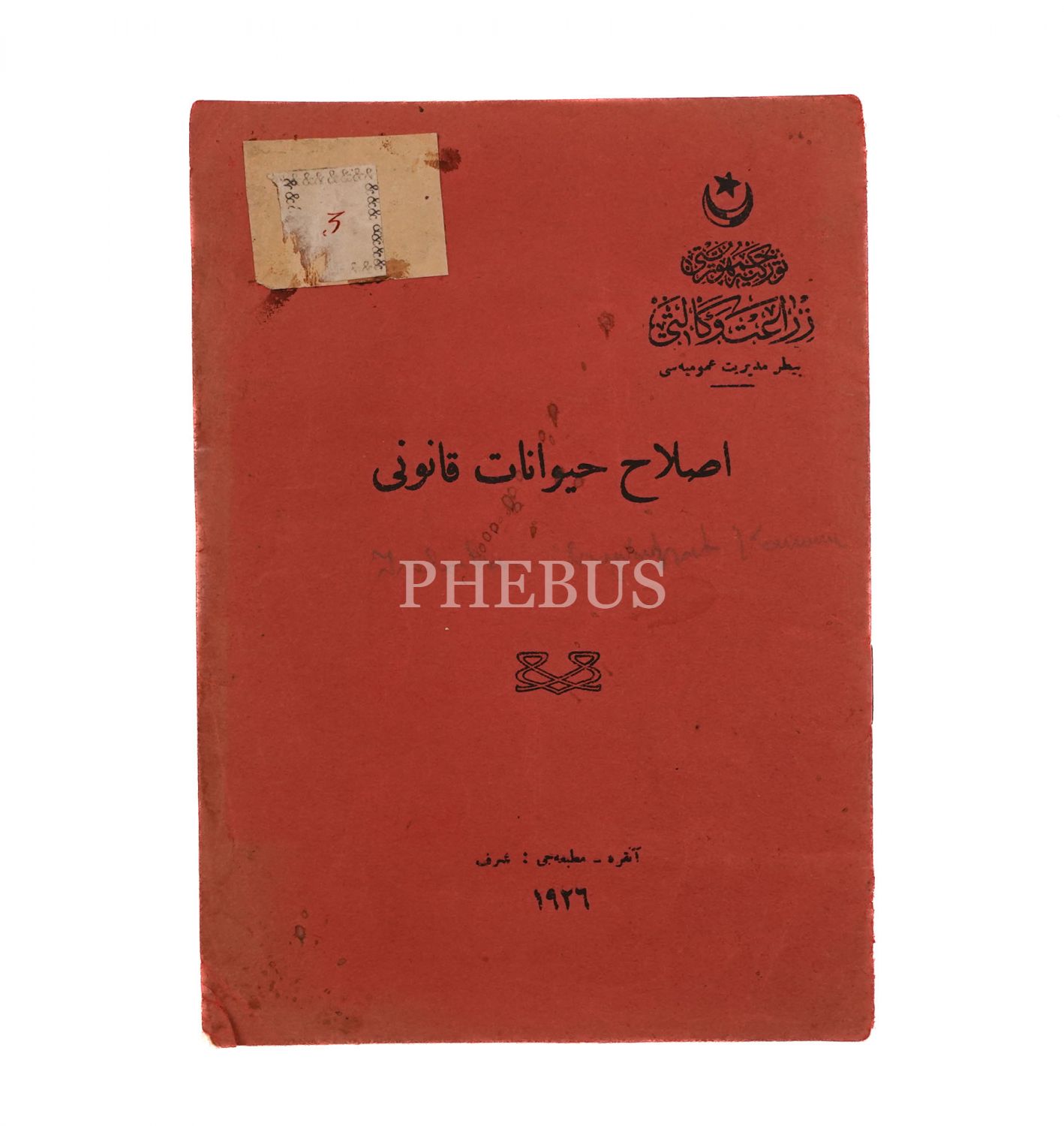 ISLAH-I HAYVANAT KANUNU, 1926, Matbaacı Şeref, Ankara, 14 sayfa, 19x14 cm...