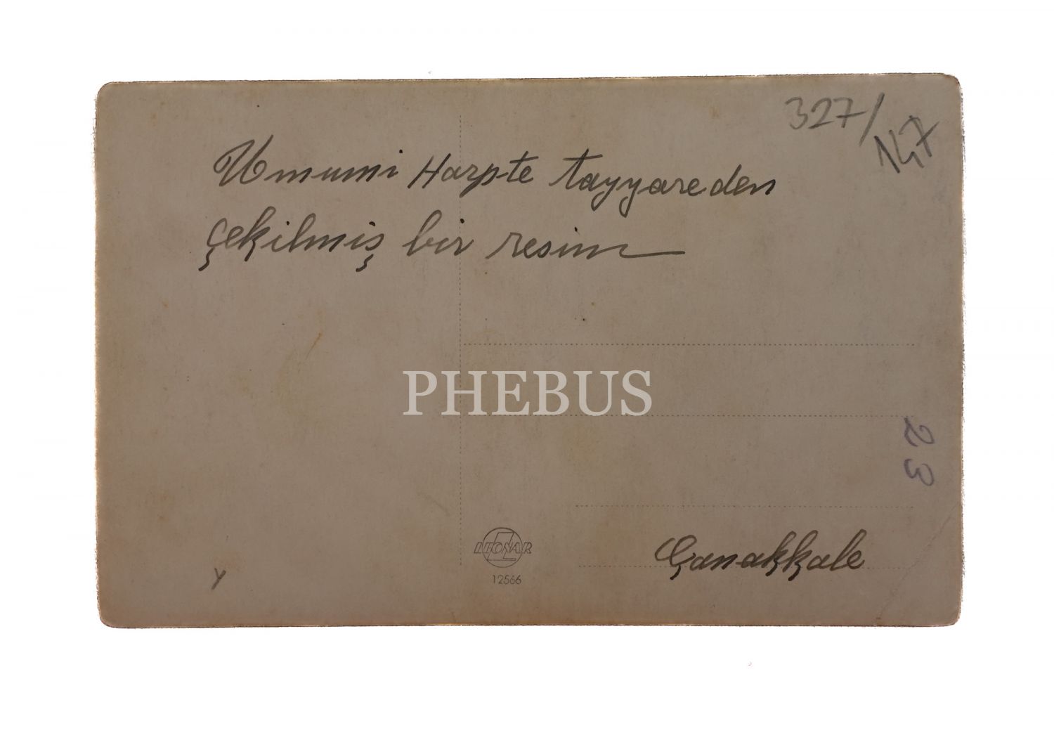 Kartın arka yüzüne yeni harflerle şu not düşülmüştür: "Umumi Harpte tayyareden çekilmiş bir resim"