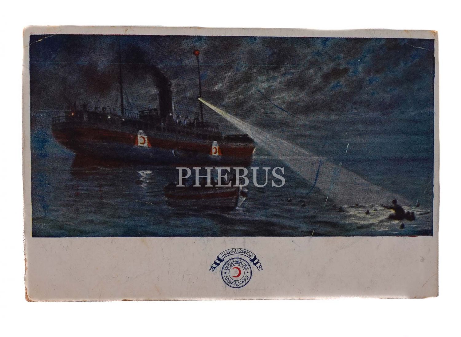 Hilal-i Ahmer Cemiyeti´ne tahsis edilmiş bir hastane gemisi denize düşen Türk askerlerini kurtarıyor, ed. Hilal-i Ahmer Cemiyeti, 14x9 cm...