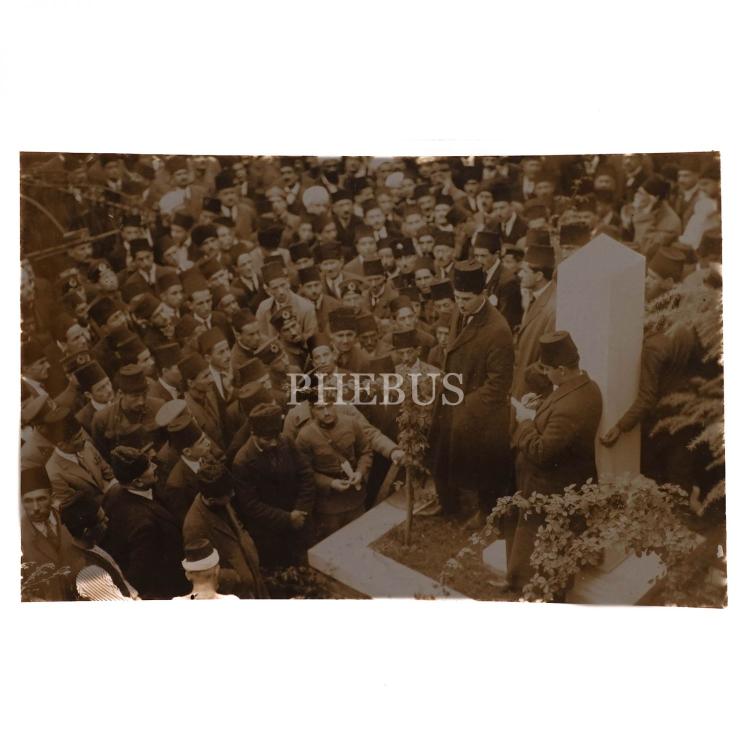 Erken Cumhuriyet döneminden kalabalık bir cenaze töreni, Osmanlıca "Foto Ferit İbrahim" damgalı, 14x9 cm...