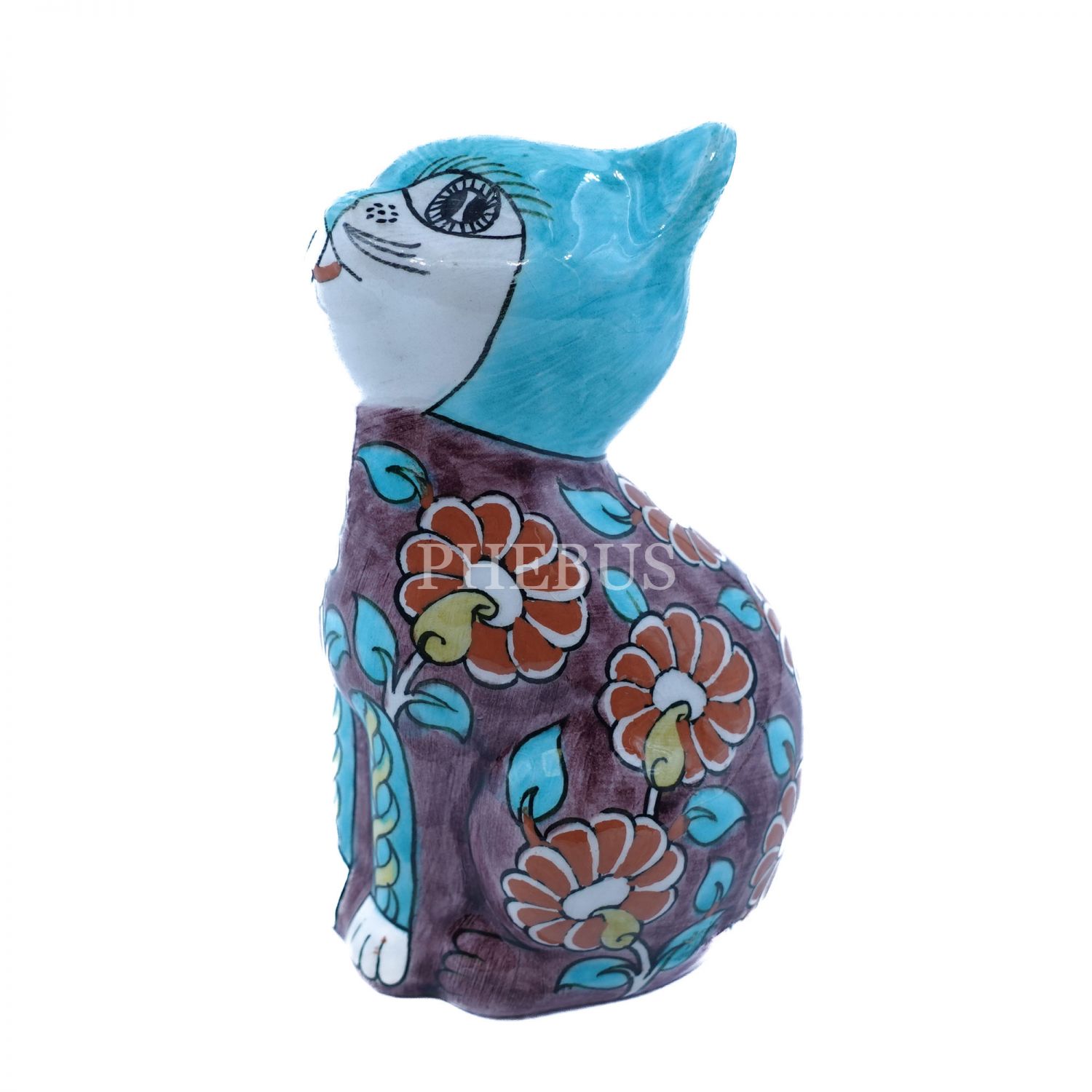 Sıtkı imzalı, Sıtkı Olçar´ın elinden Kütahya çini kedi figürü, 14x8 cm...