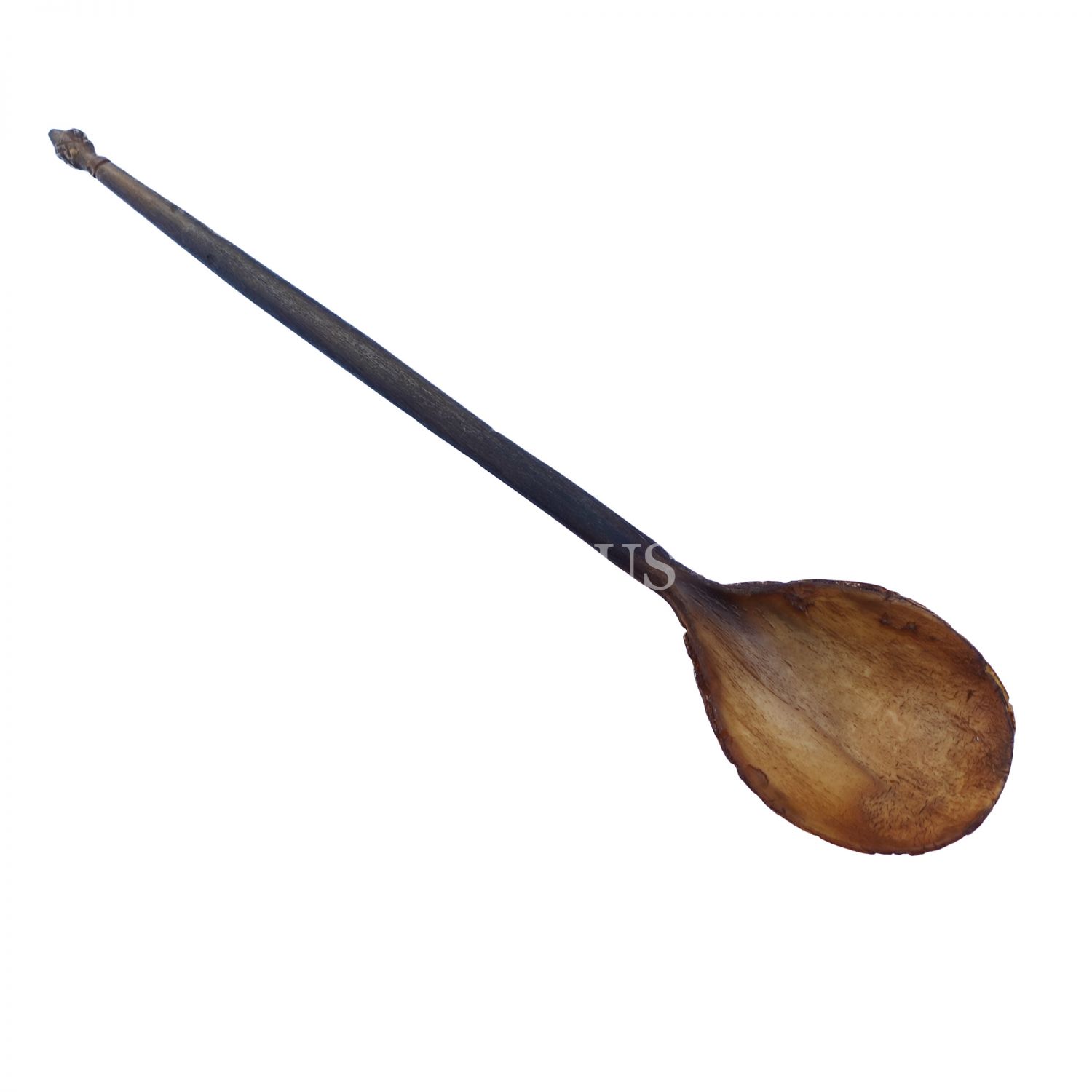 Yekpare boynuzdan yapılmış, Osmanlı dönemi tekke işi kaşık. 21,5 cm...