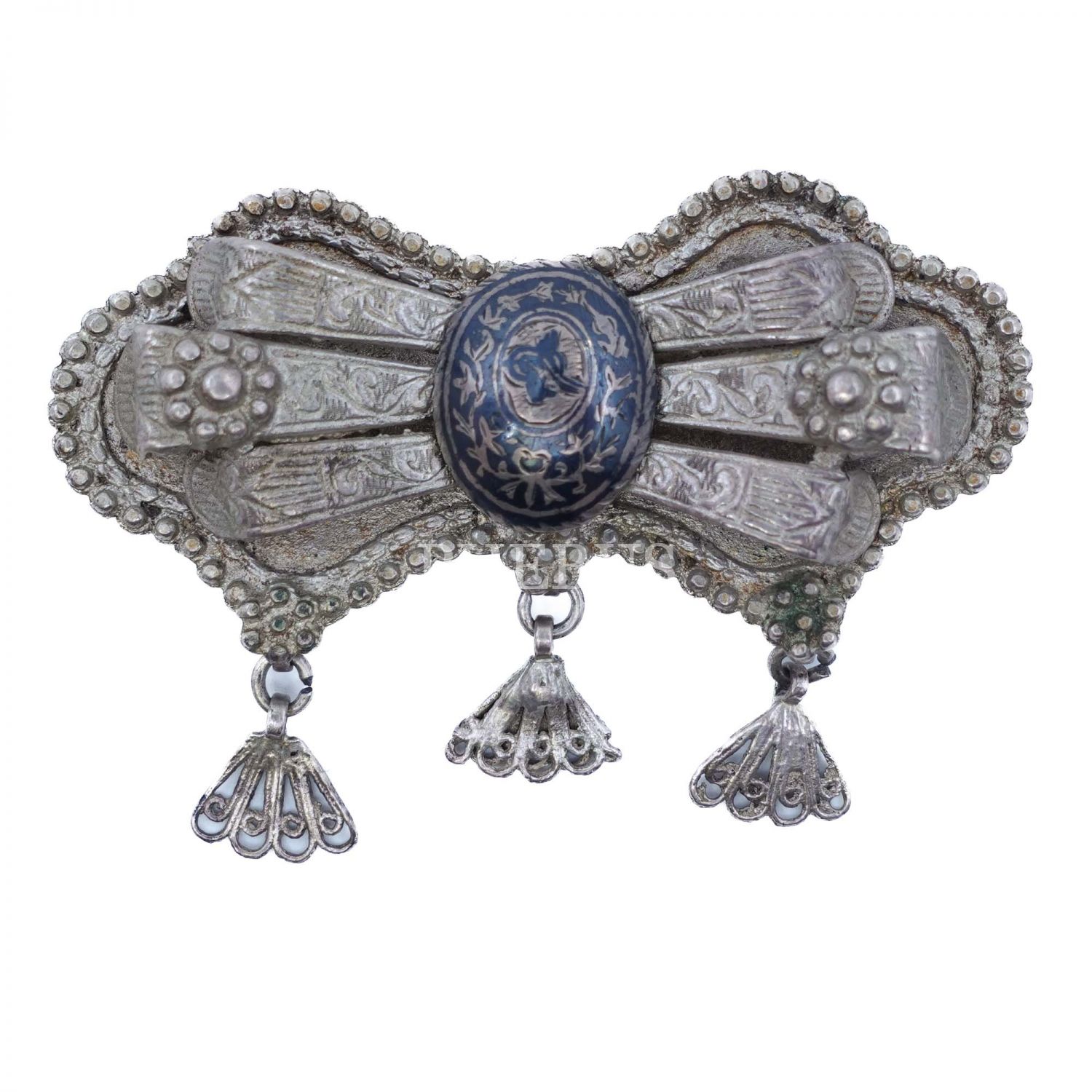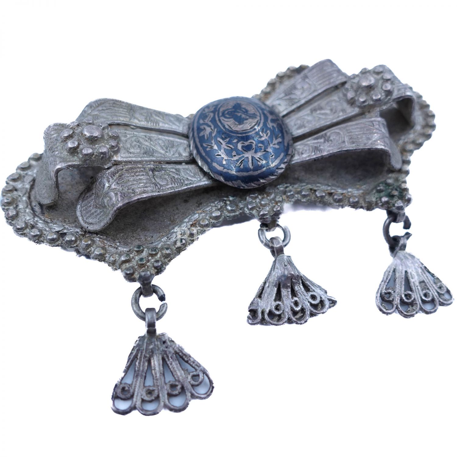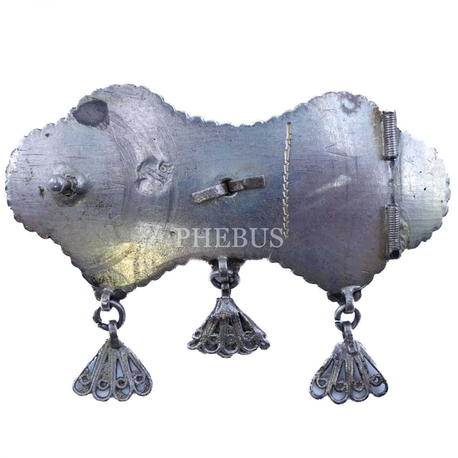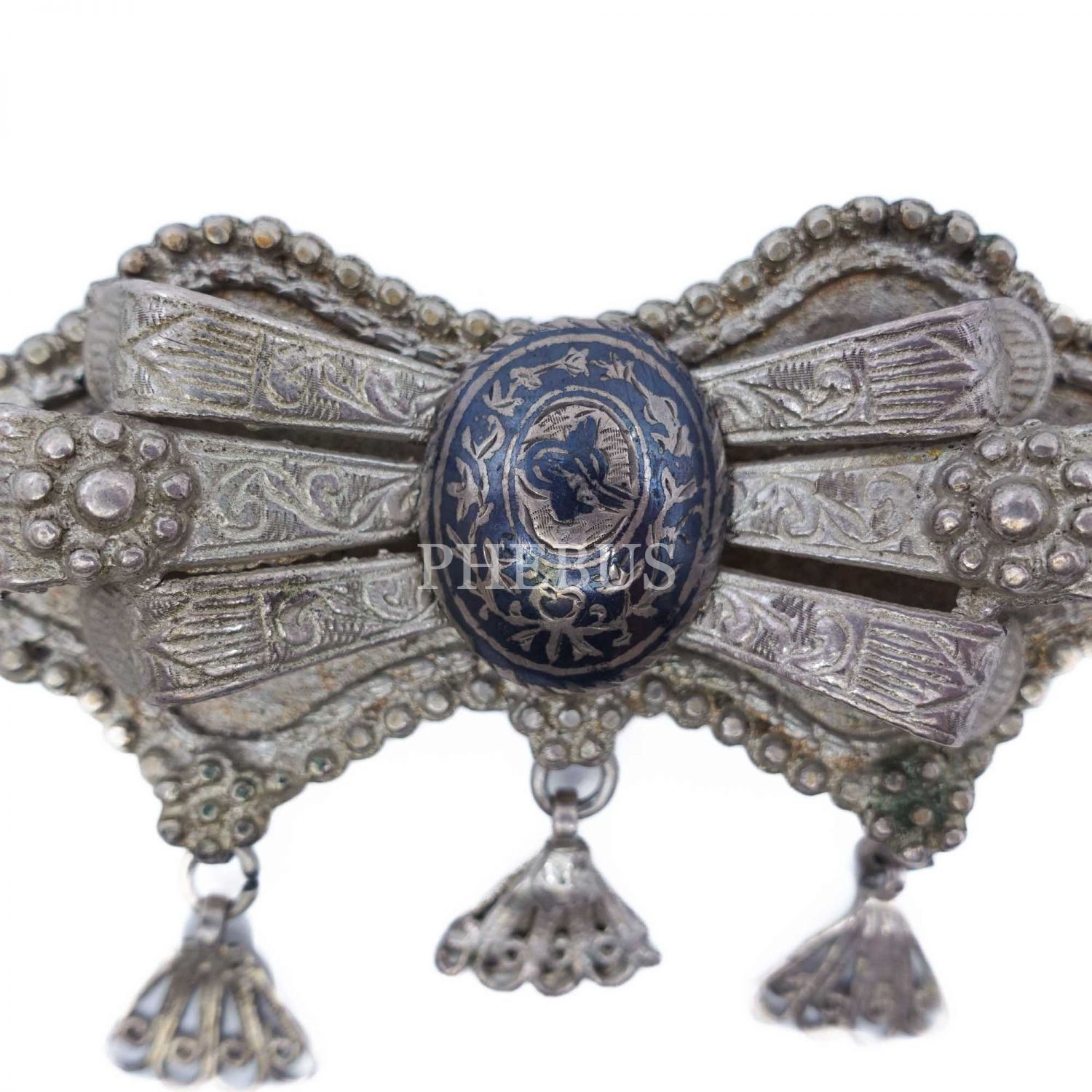 Savatlı gümüşten mamül, Göbek kısmı tuğralı, usta damgalı kemer tokası, 9x5 cm...