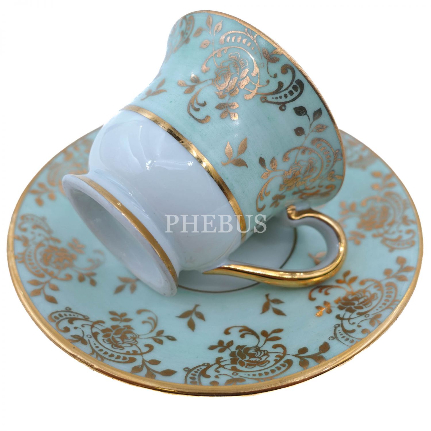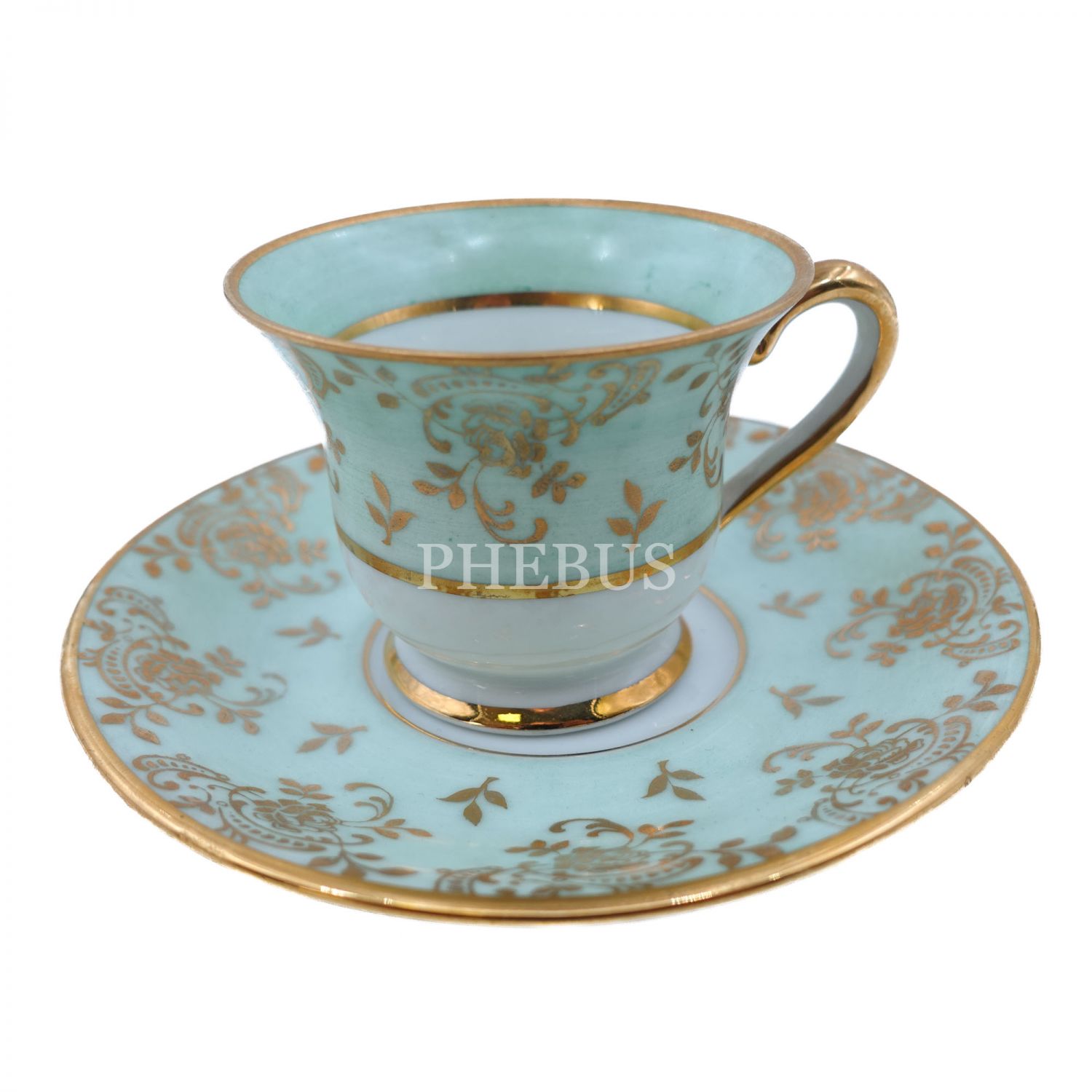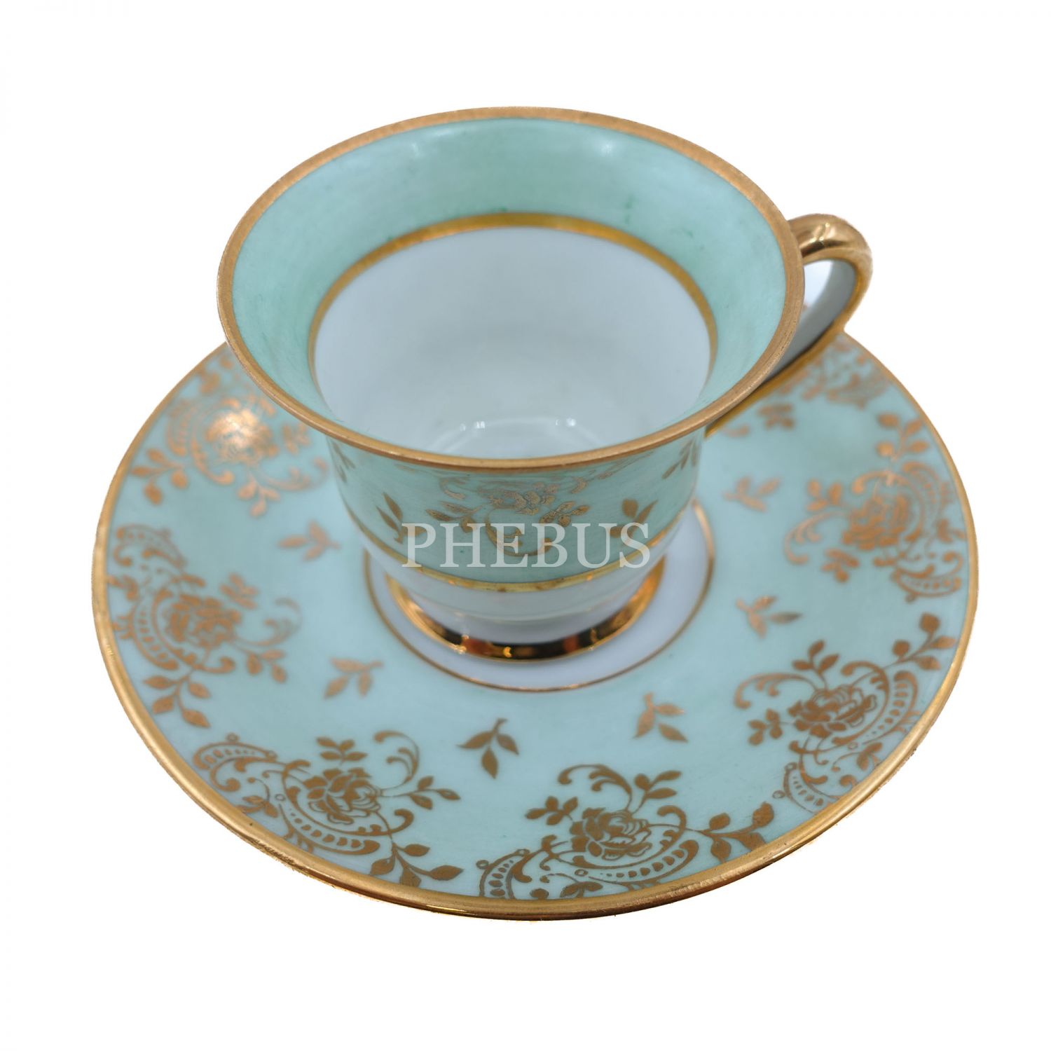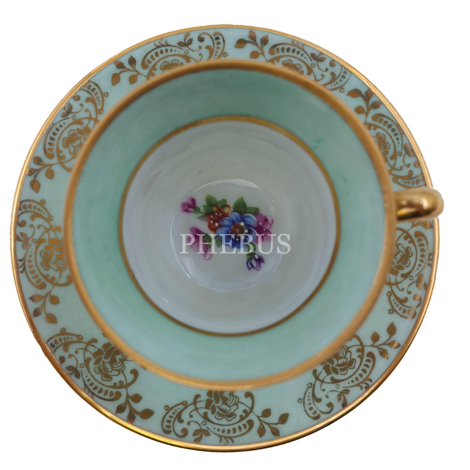 Limoges (France) damgalı, altın yaldız floral desenli fincan ve tabağı, fincanın iç merkezi el boyama çiçek desenleriyle bezelidir...