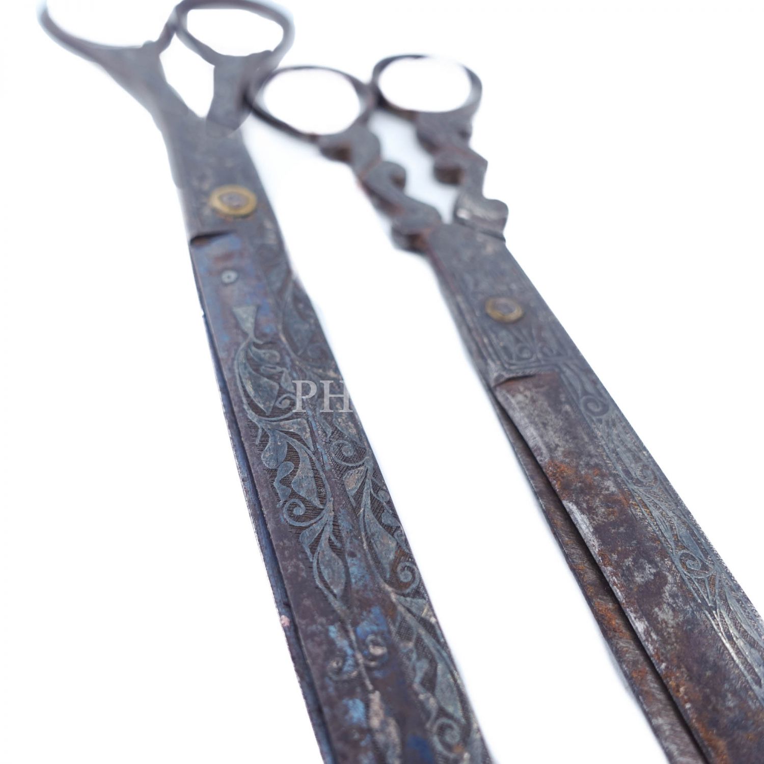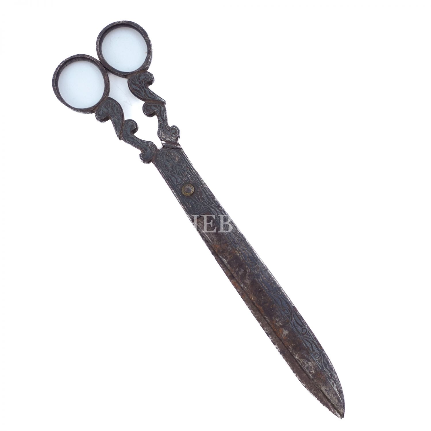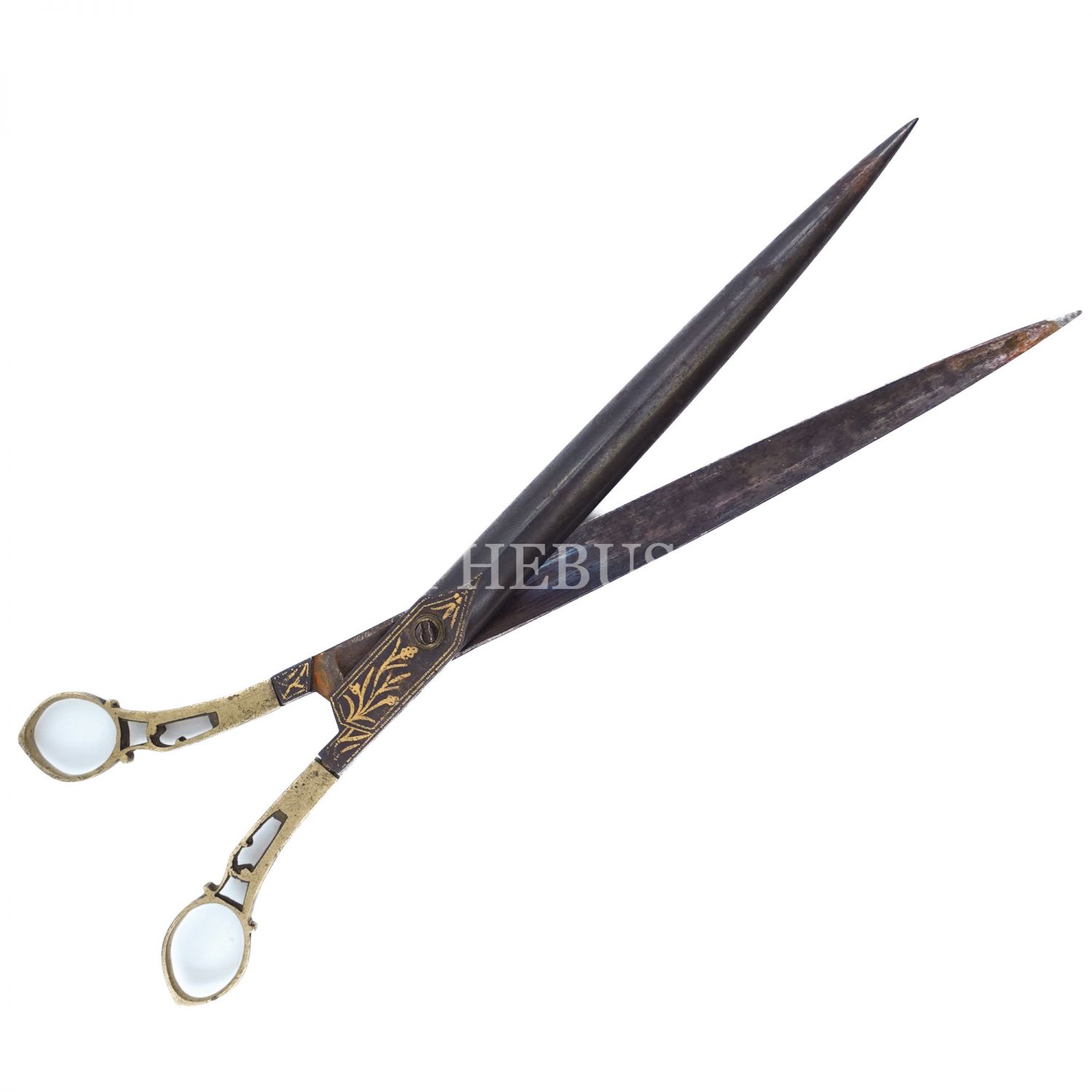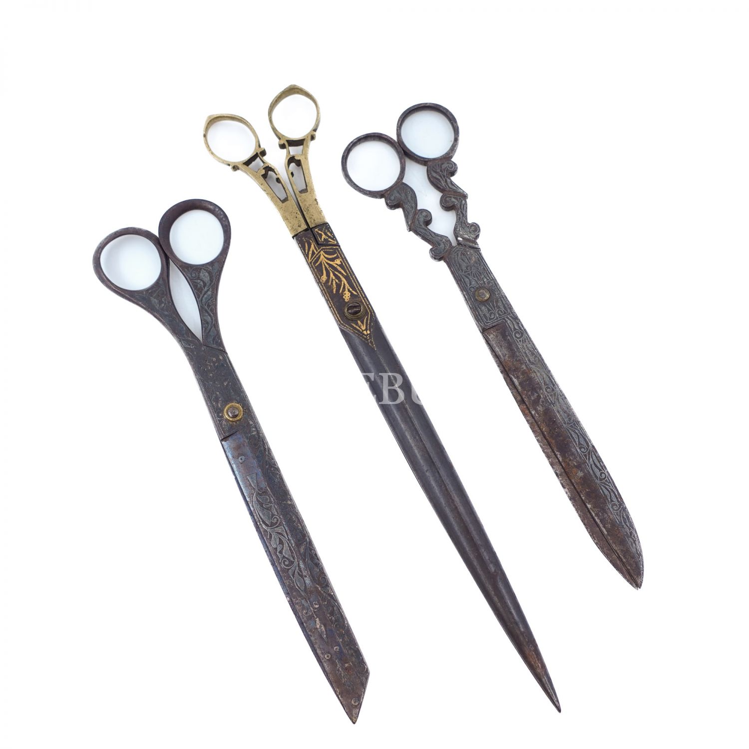 Biri katip, diğer ikisi saraç olmak üzere üç adet hattat makası, katip makasının bıçak altı kısmı altın yaldız işlemeli, saraç makaslarının her ikisinin gövdeleri kalem işçiliklidir, katip makası 25 cm, saraç makasları ise 20 cm´dir...