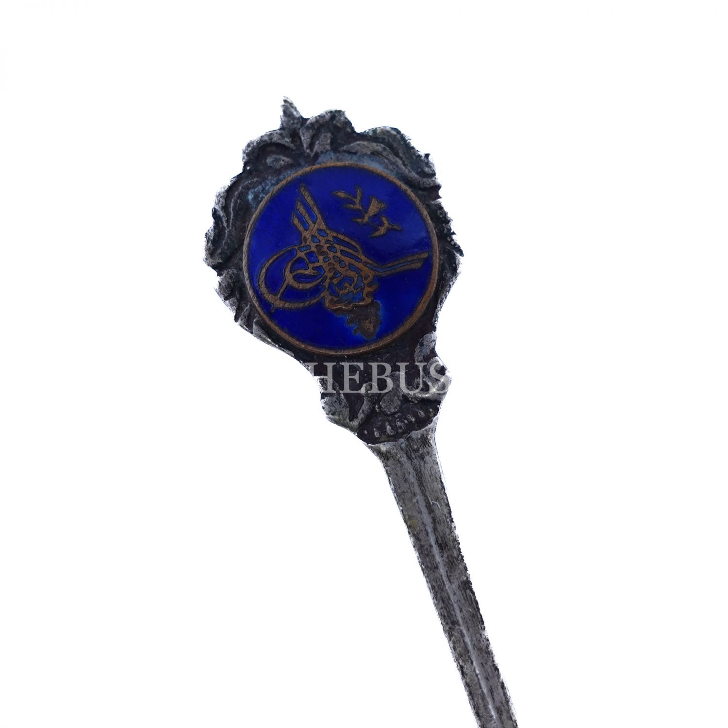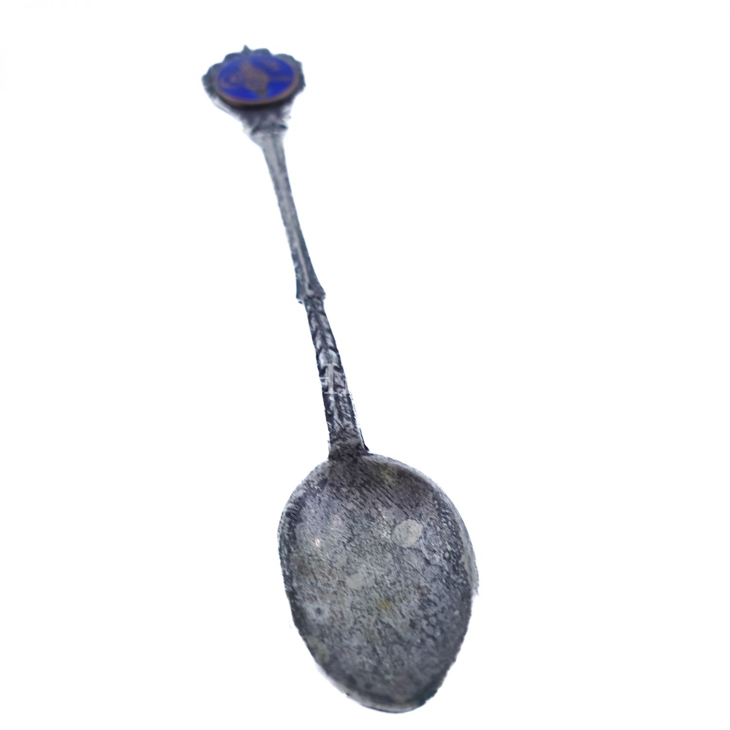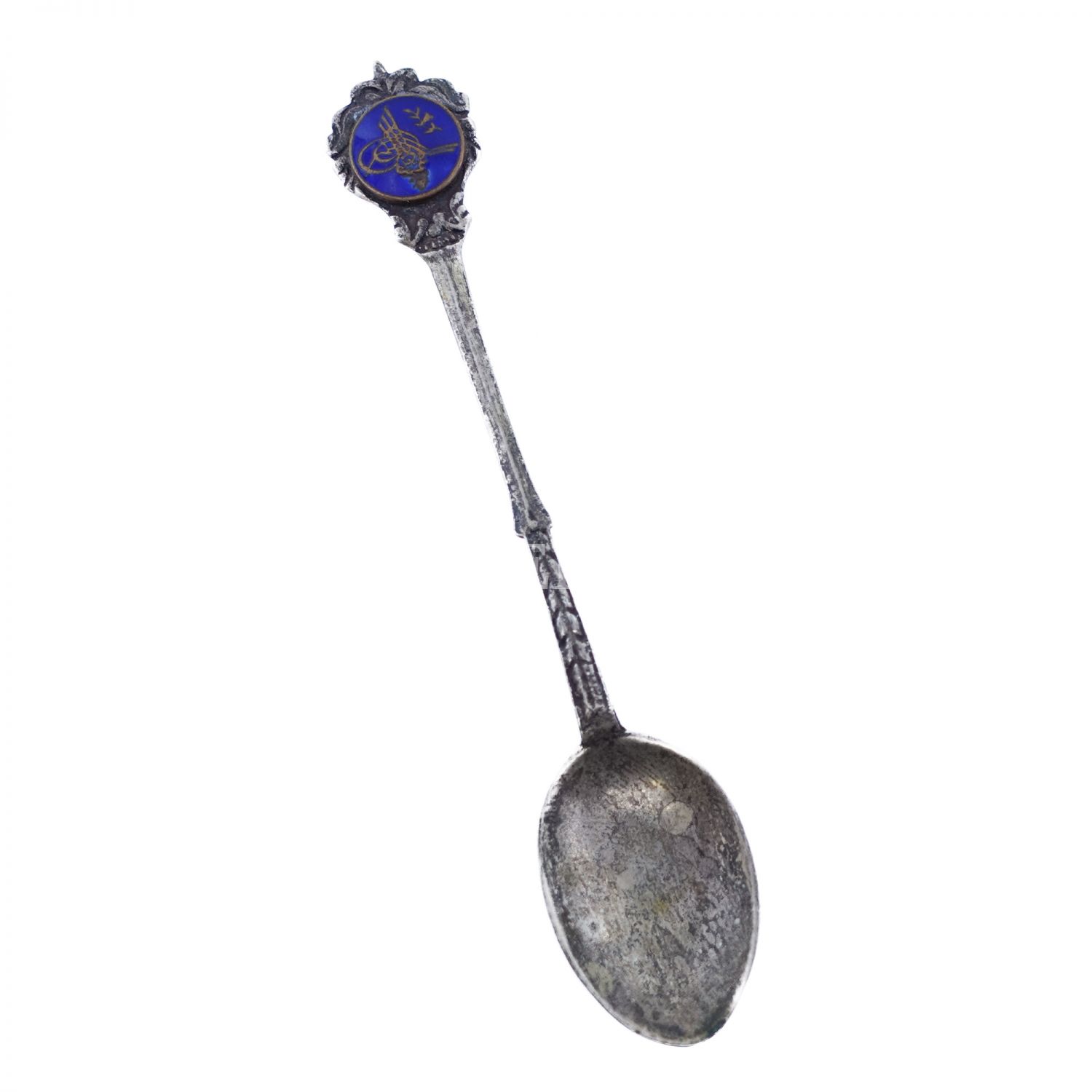 Sapı mavi mine üzeri tuğra görselli, gümüş çay kaşığı, 7 gr, 11 cm...