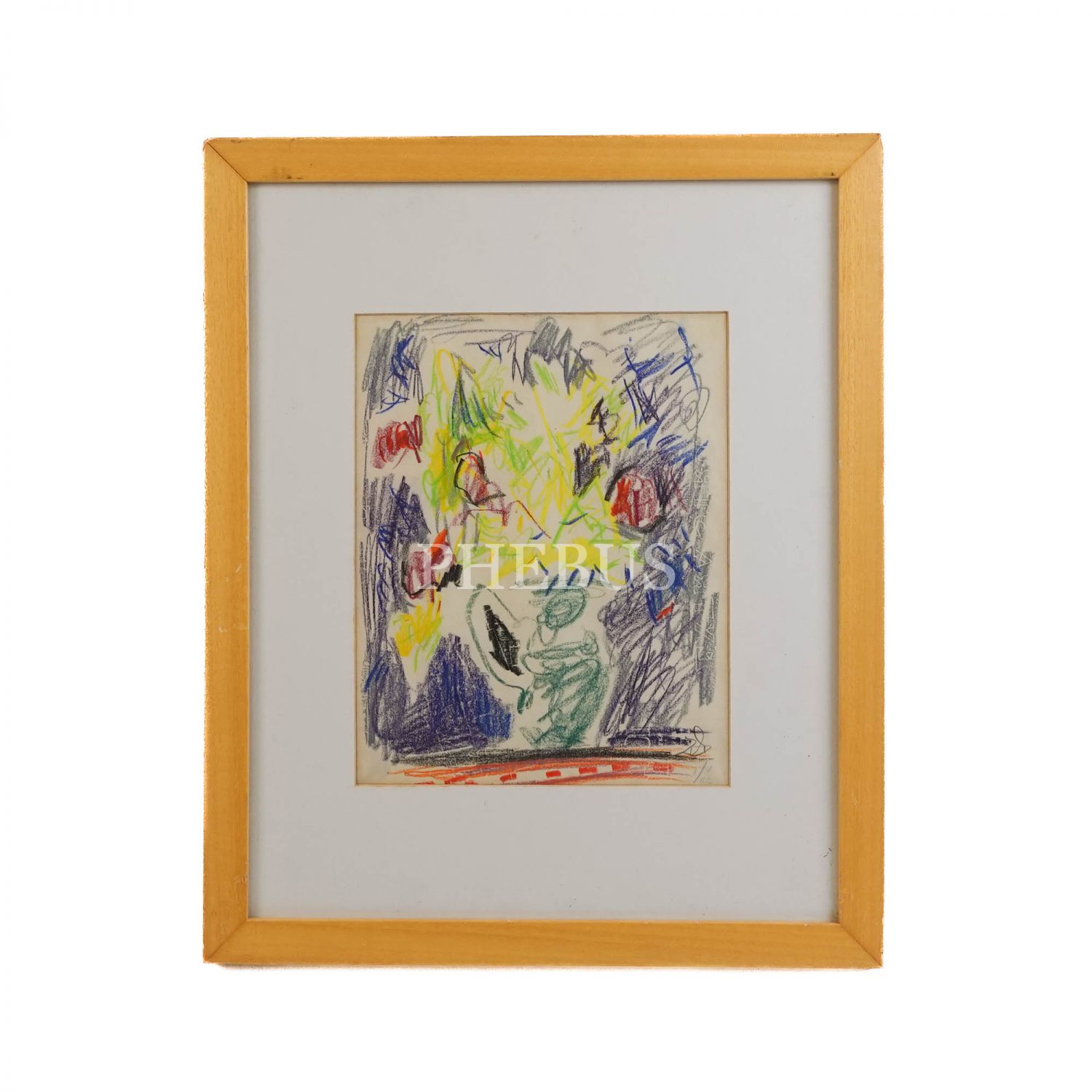 Zeki Faik İzer imzalı, kâğıt üzeri pastel tekniğiyle yapılmış soyut çalışma, 50x40 cm...