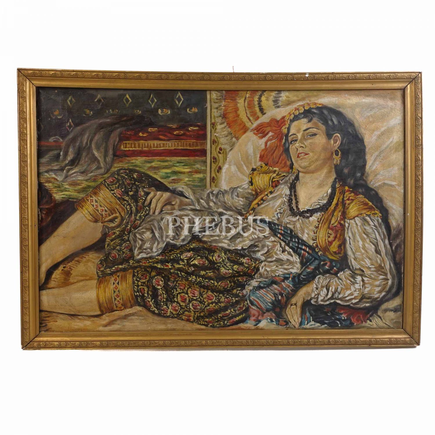 Tuval üzeri yağlıboya, uzanmış kadın temalı resim, 77x112 cm...