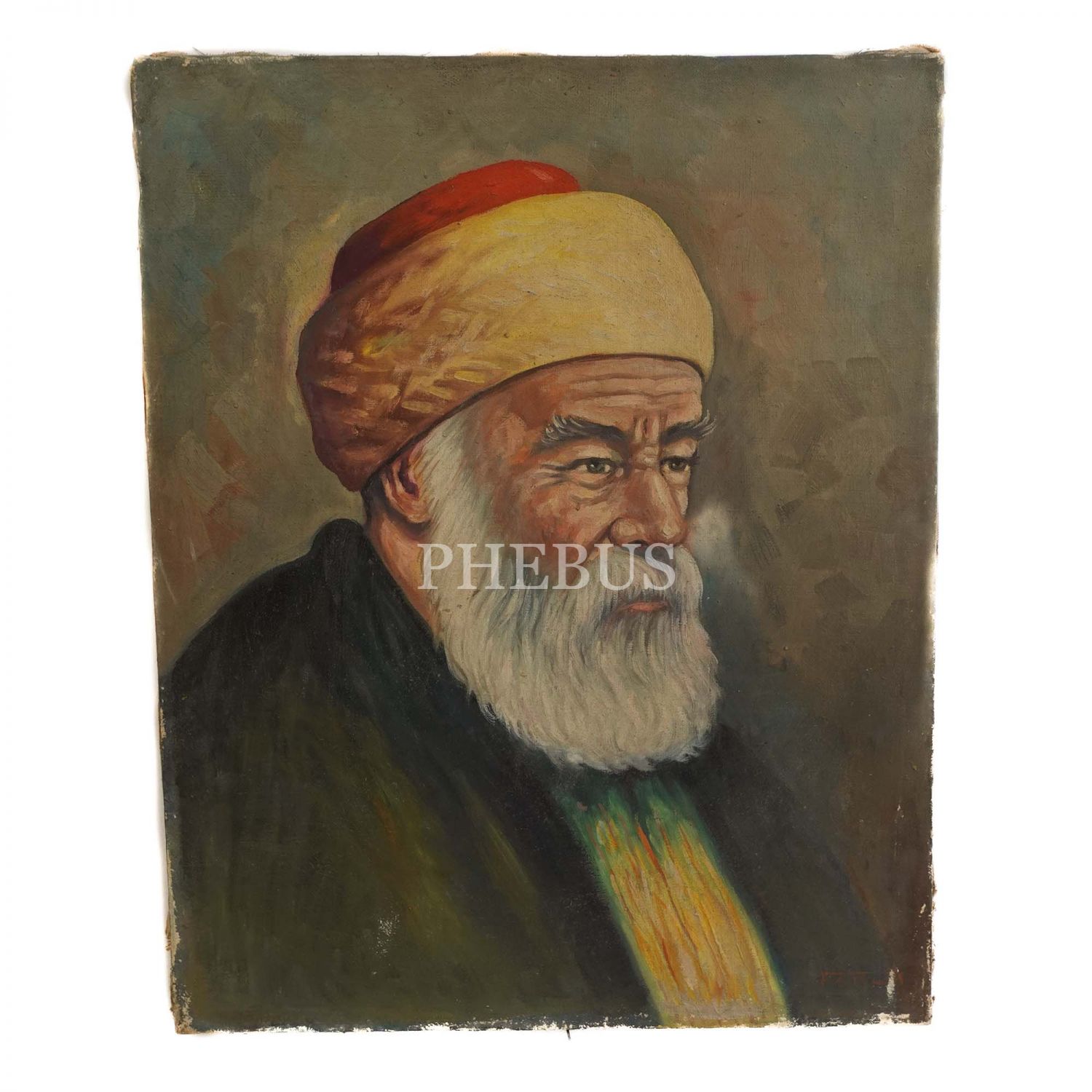 Ressam ve karikatürist Faruk Alpkurt´un fırçasından, Faruk imzalı, tuval üzerine yağlıboya sarıklı hoca portresi, 40x50 cm...