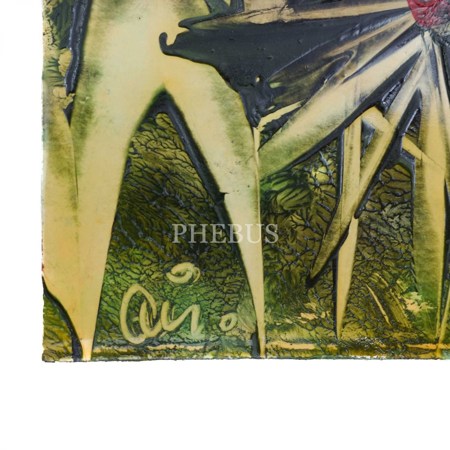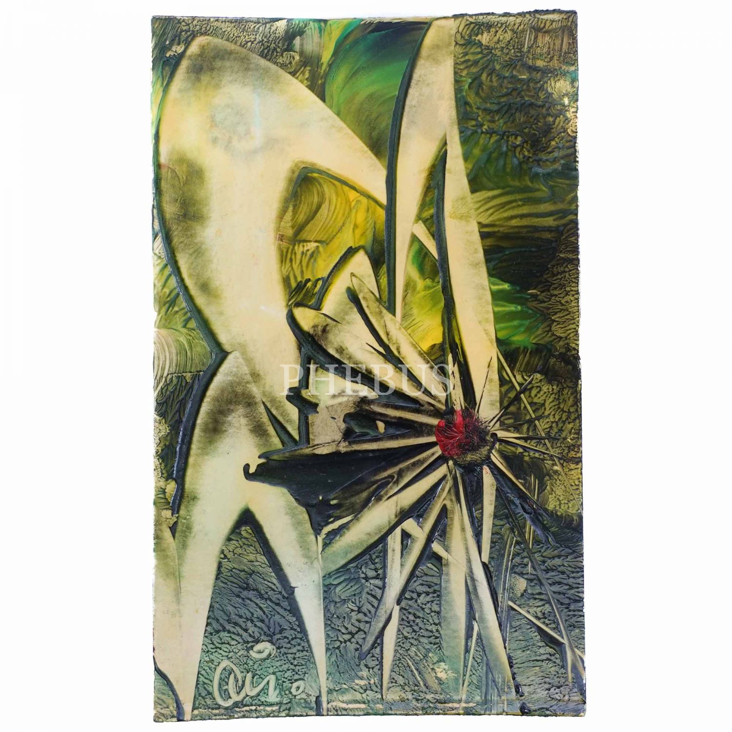 Metin Eloğlu´nun ´´Ali´´ imzasıyla, kâğıt üzerine yağlıboya çiçek çalışması, 8x14 cm...