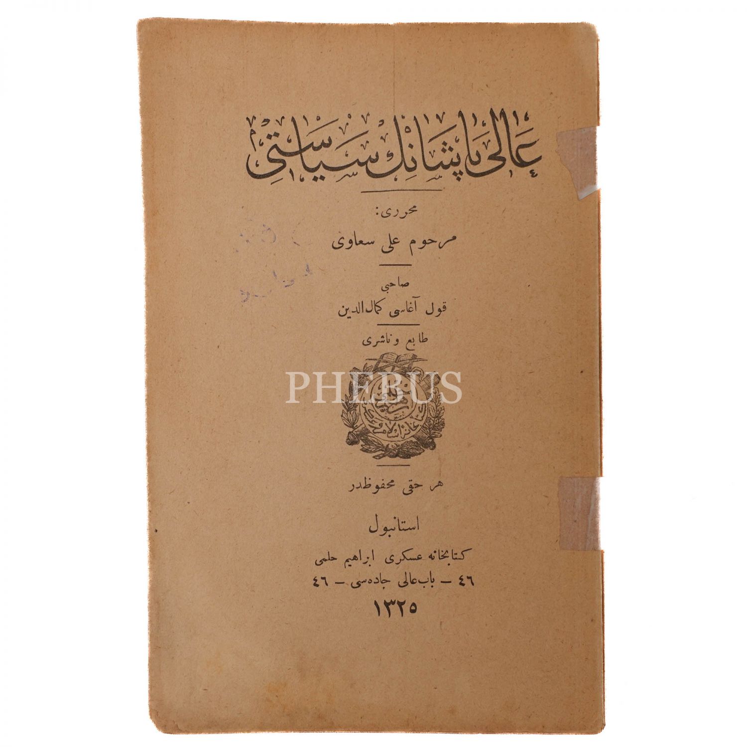 ÂLÎ PAŞA´NIN SİYASETİ, Ali Suavi, 1325, Kütüphane-i Askeri, 39 sayfa, 18x12 cm...