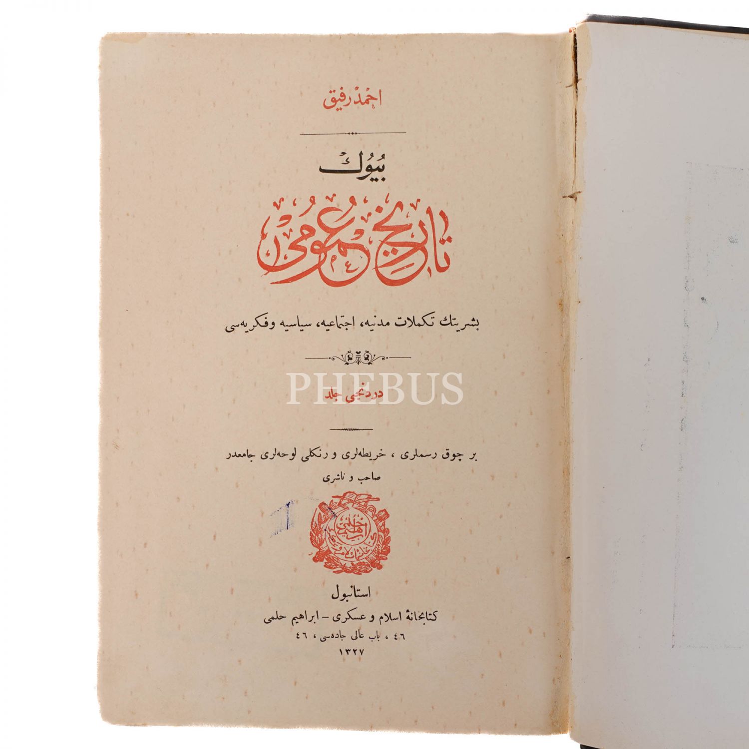 BÜYÜK TARİH-İ UMUMİ, 3. cilt, Ahmet Refik, 1327, Kütüphane-i İslam ve Askeri, 480 sayfa, 24x17 cm...