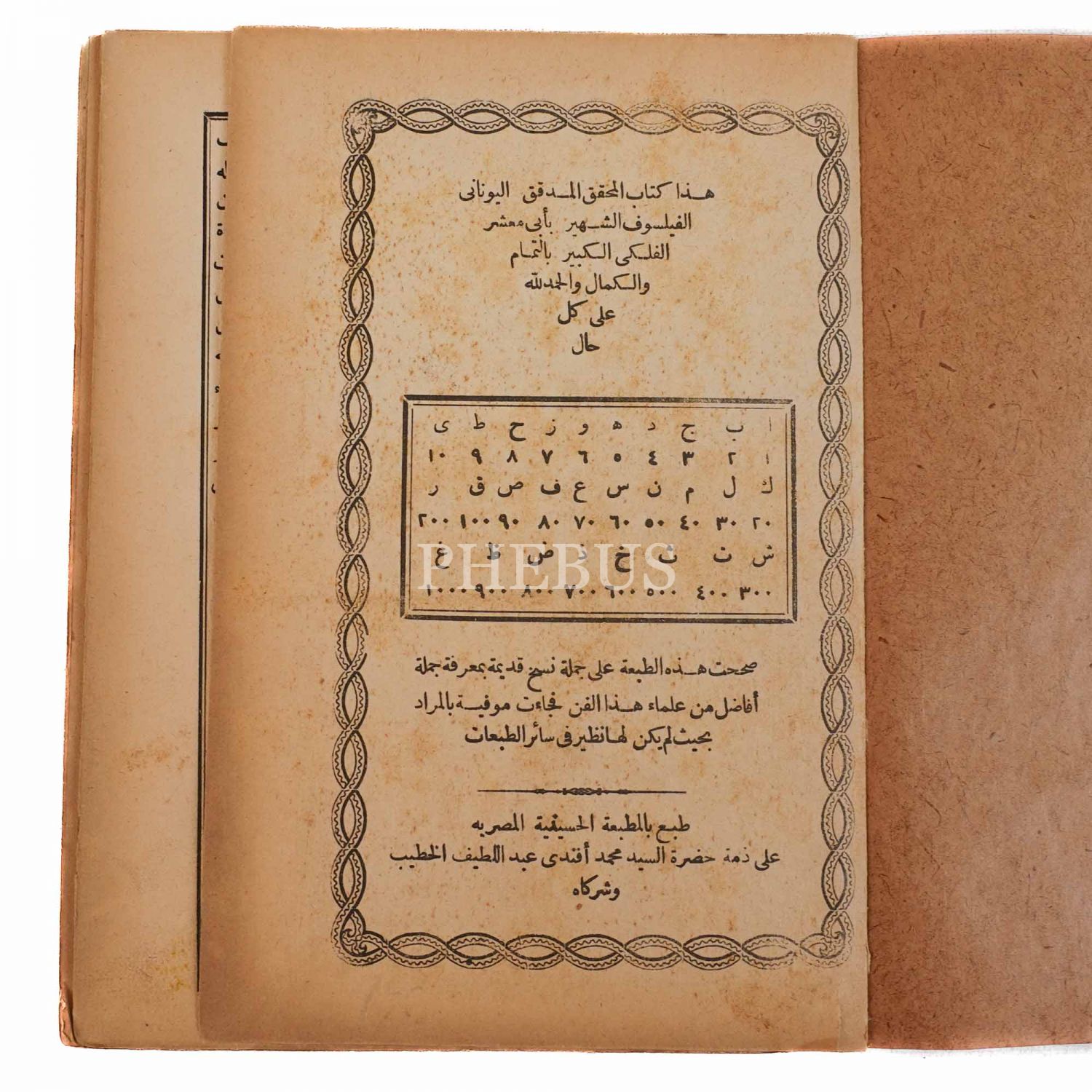 Kitabü’l-Muhakkıki´l-müdekkik el-Yûnanî el-feylosof eş-Şehîr bi Ebî Maʿşer el-Felekî el-Kebîr (Astroloji kitabı), Arapça, Matbaatü´l Hüseyniye, Mısır, 100 sayfa, 20x14cm.