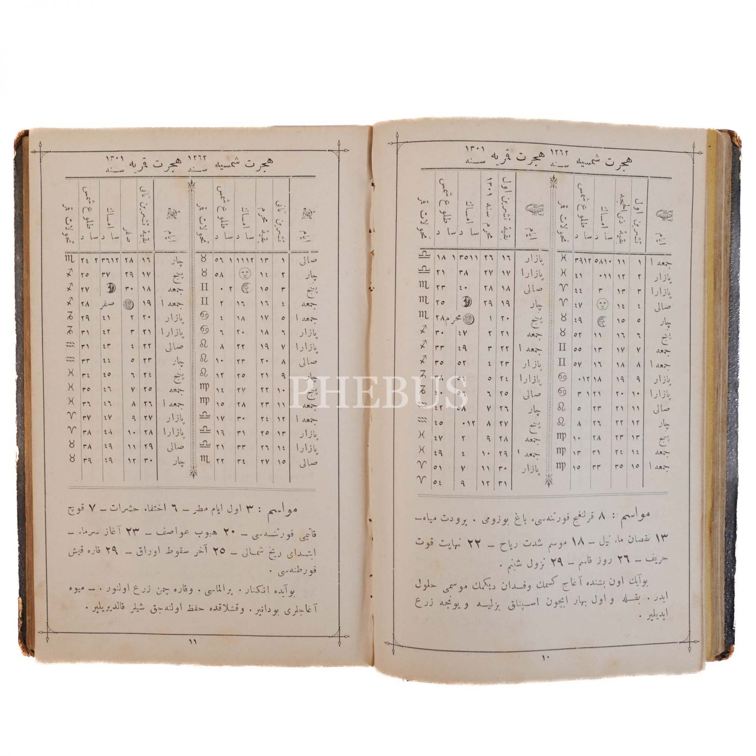 Mevsim geçişlerini, hava değişikliklerini, ay-güneş tutulması gibi hadiseleri gösterir beş yıllık ajanda.