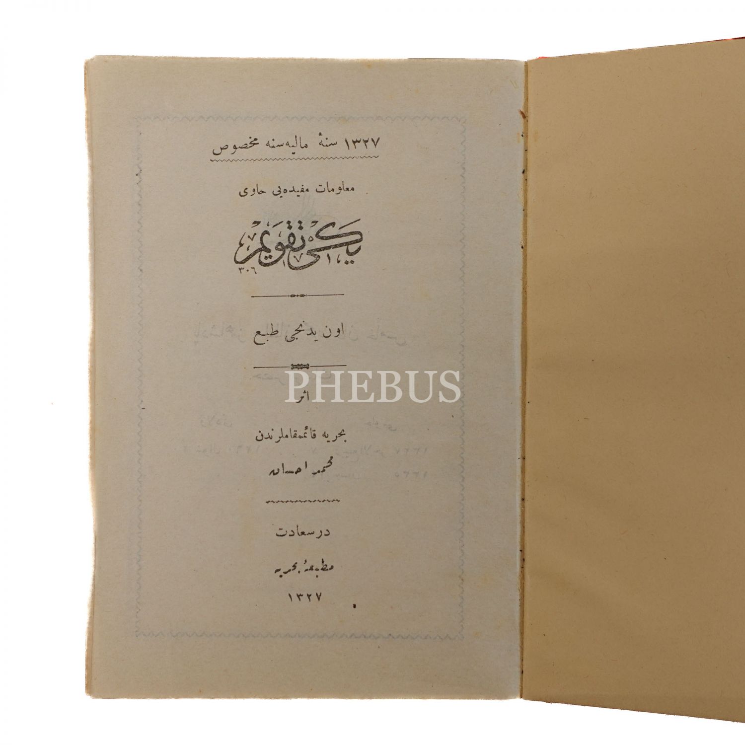 1327 SENE-İ MALİYESİNE MAHSUS YENİ TAKVİM, Mehmet İhsan, 1327, Matbaa-i Bahriye, 240 sayfa, 15x11 cm..