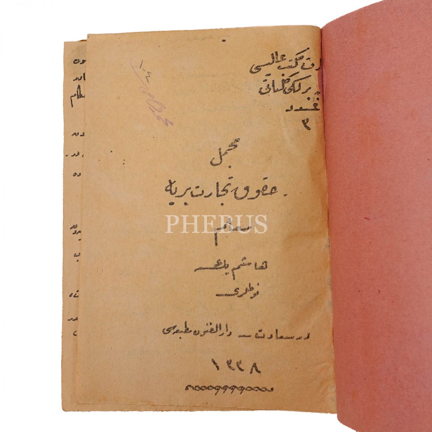 1. MÜCMEL HUKUK-I TİCARET-İ BERRİYE, 1338, 160 sayfa. 2.MUKAVELAT-I TİCARİYE, 1339, 94 sayfa. 3.İFLAS BAHSİ, 1339, 42 sayfa, 19x14 cm...