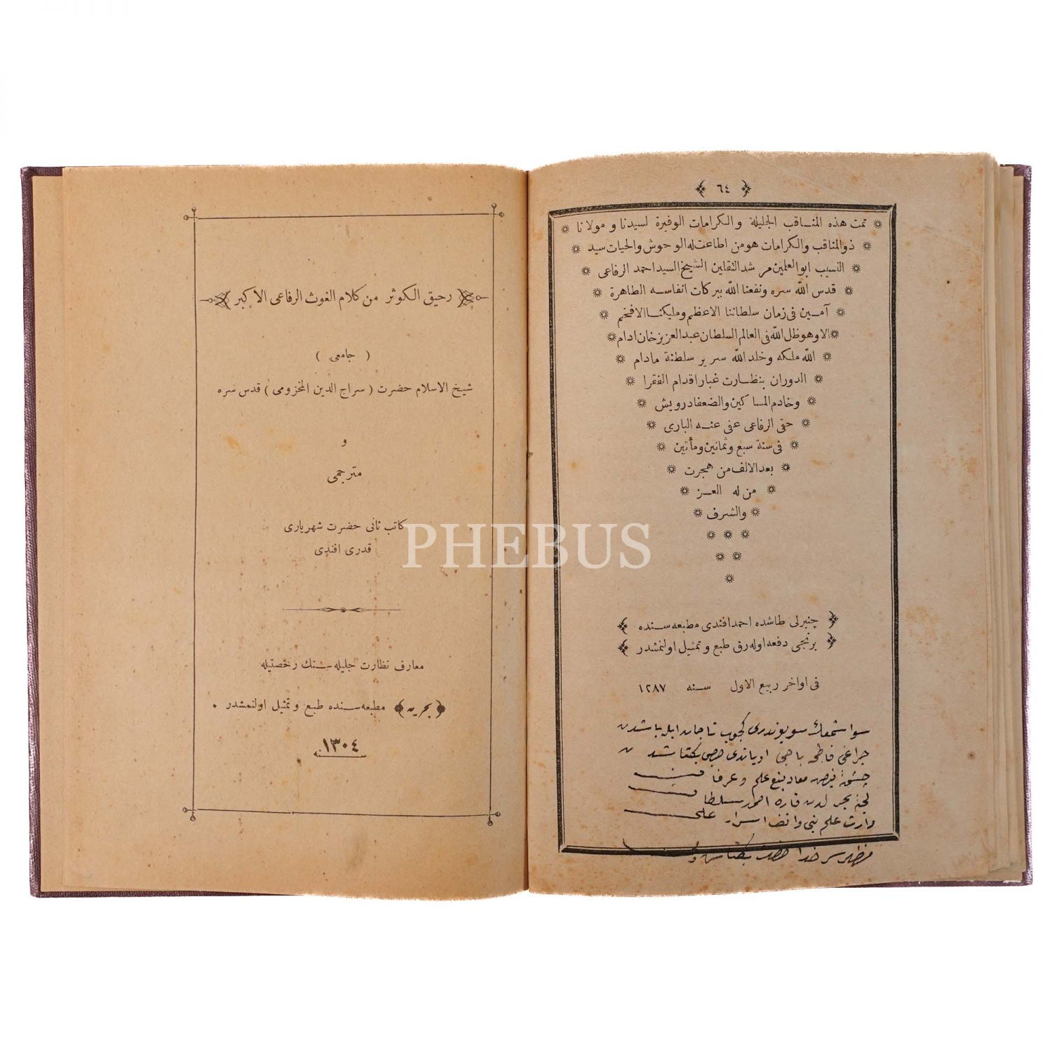 MENAKIB-I HAZRET-İ SULTAN SEYYİD AHMED ER-RIFAİ, 1287, Ahmet Efendi Matbaası, 64 sayfa, 23x16 cm...