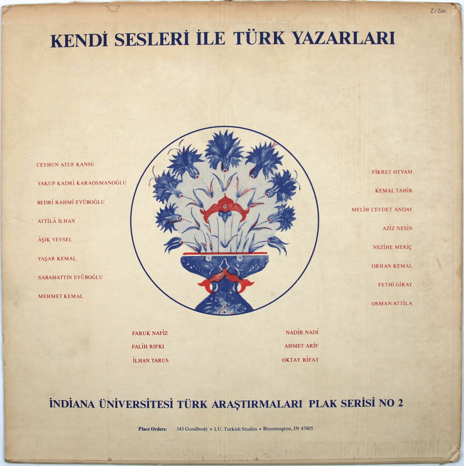 33'lük Plak: Kendi Sesleri İle Türk Yazarları [The Voice of Turkish Authors], Indiana Üniversitesi Türk Araştırmaları Plak Serisi No:2.