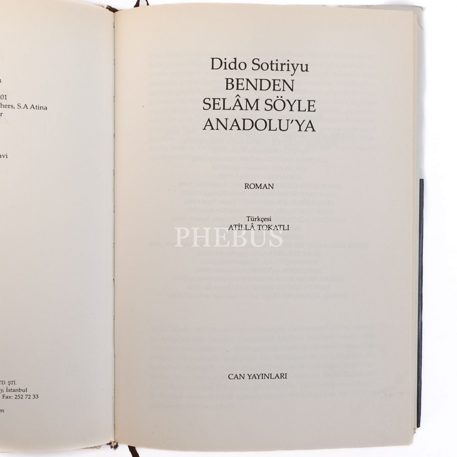 BENDEN SELAM SÖYLE ANADOLU´YA, Dido Sotiriyu, (Çeviren: Atilla Tokatlı), 2007, Can Yayınları, 230 sayfa, 14x21 cm...