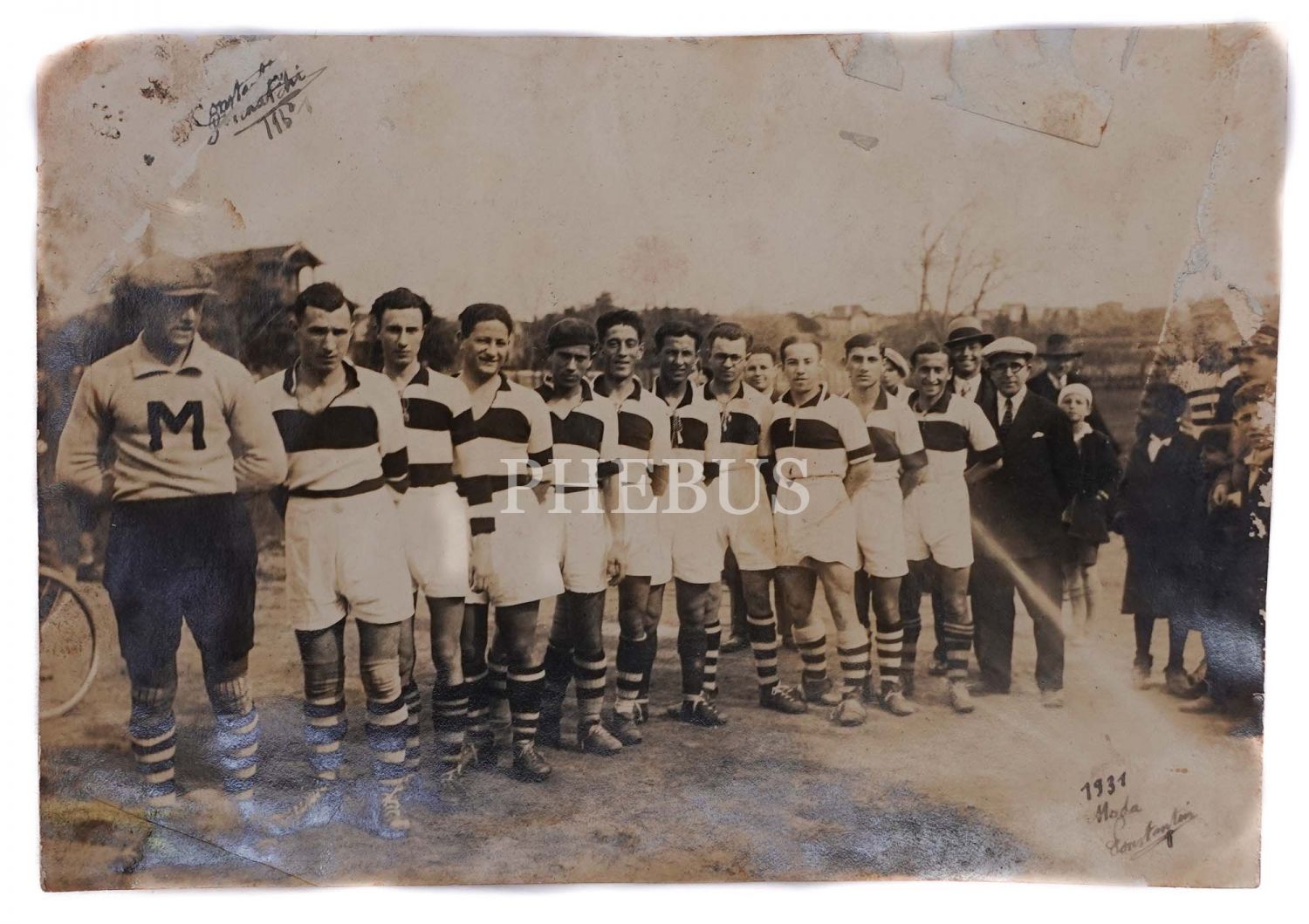 1931 senesinden bir futbol takımının antrenman sahasında çektirdiği hatıra fotoğrafı, 14x9 cm...