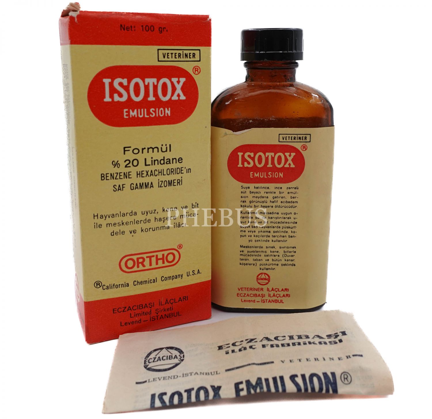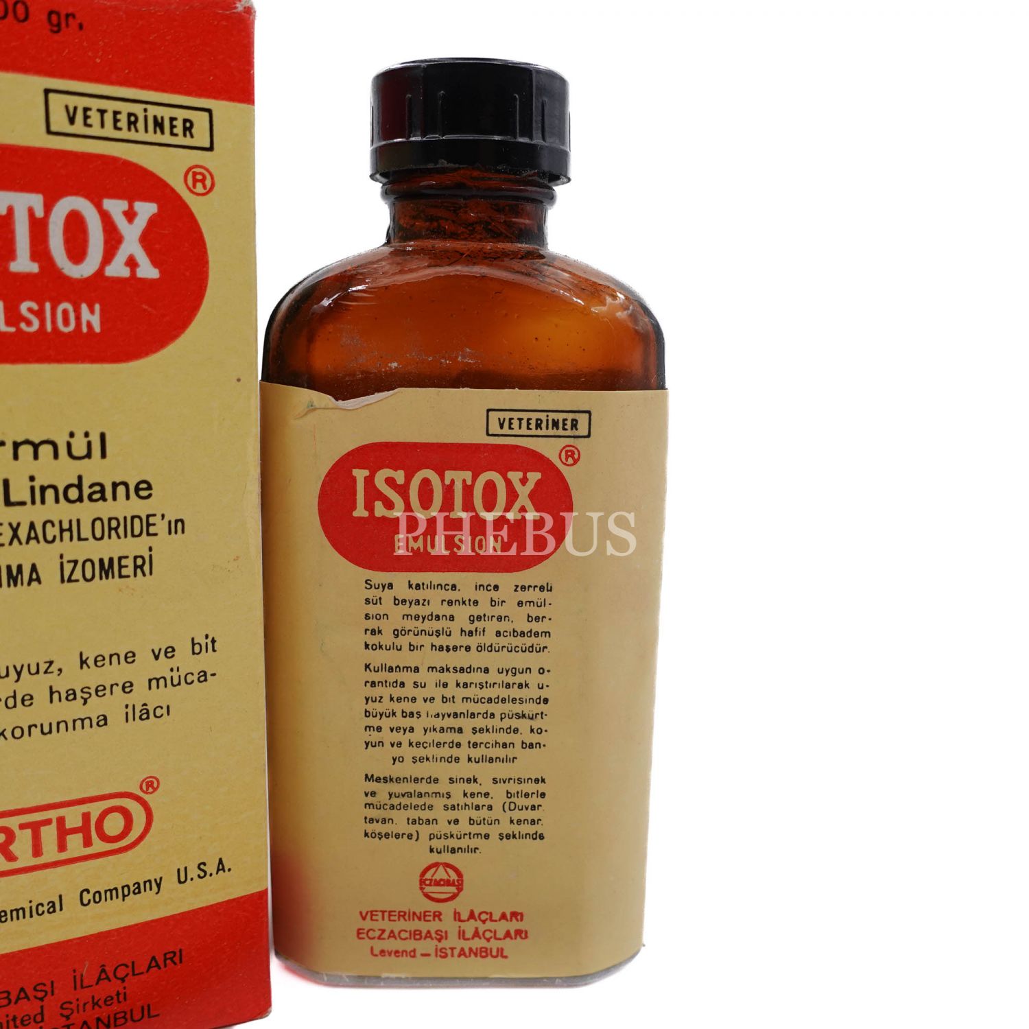 Prospektüsünün de bulunduğu orijinal kutusunda "Isotox Emulsion" şişesi, 6x13x3 cm...