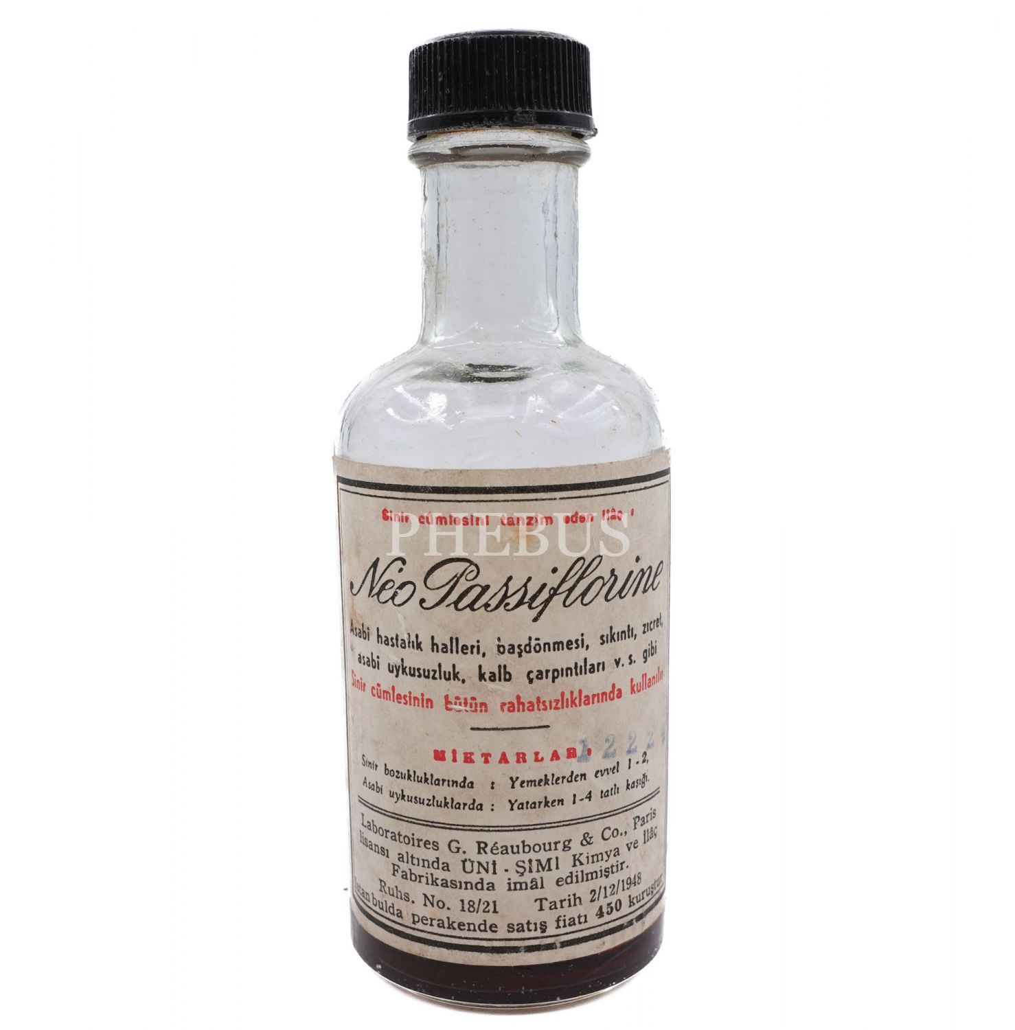 "Neo Passiflorine" ilacının cam şişesi, 12x4 cm...