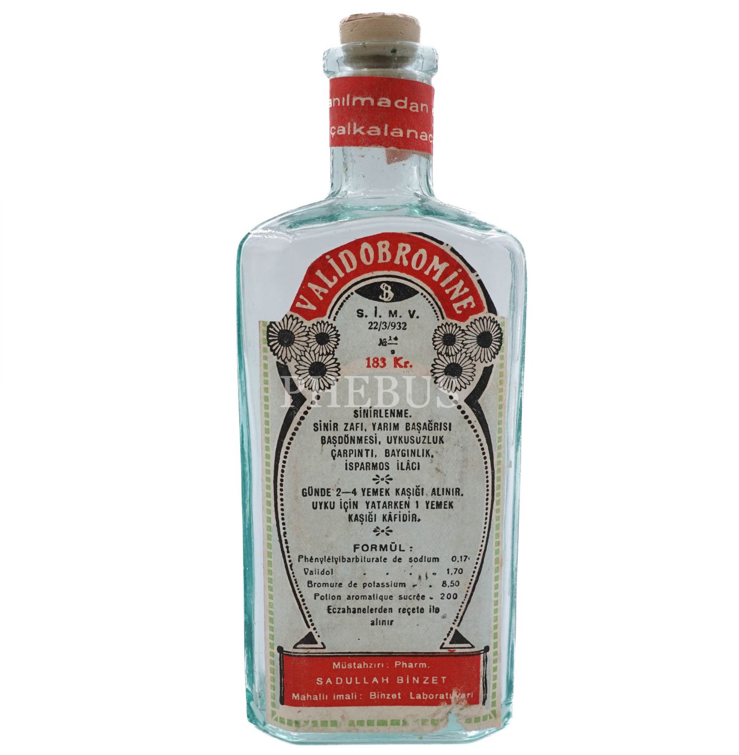 "Validobromine" marka, cam ilaç şişesi, 17x6x3 cm...