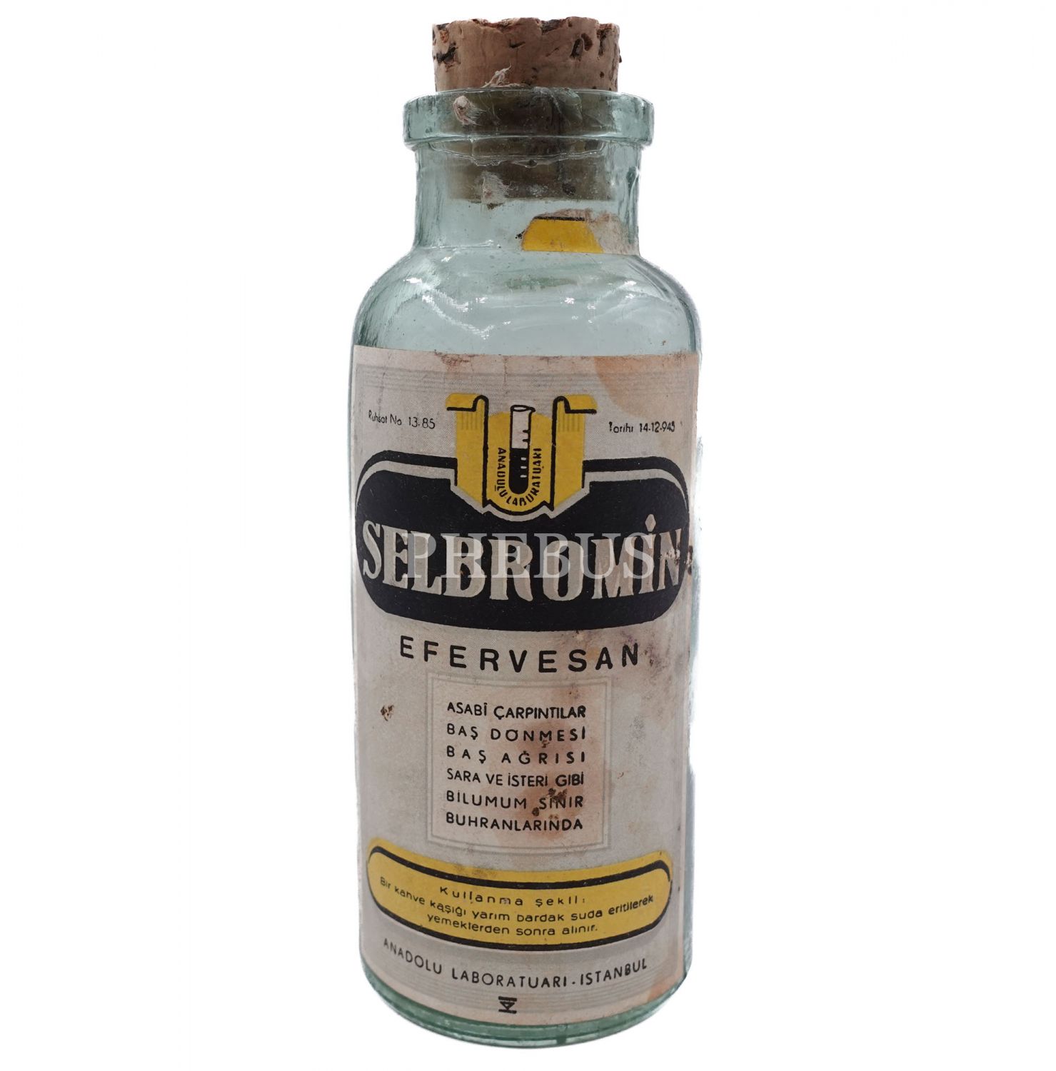 "Selbromin" ilacının cam şişesi, 14x5 cm...
