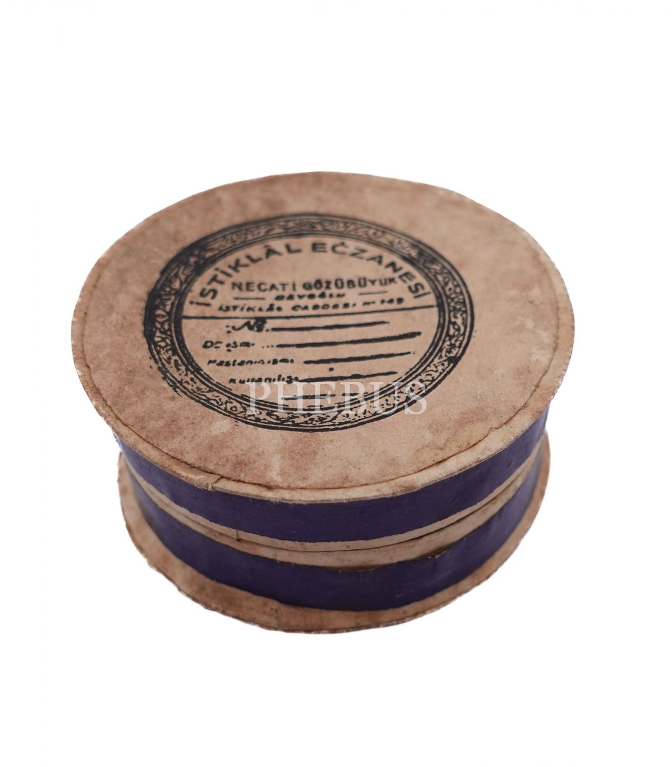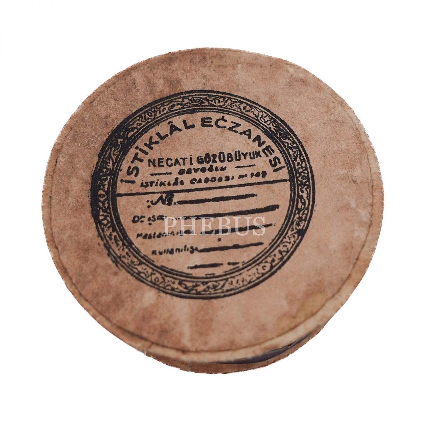 "İstiklal Eczanesi - Necati Gözübüyük" reklamlı, karton ilaç kutusu, çap 5 cm...