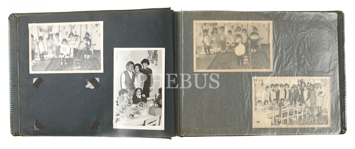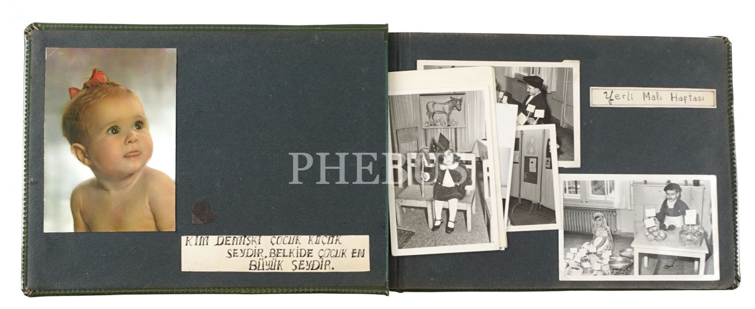 Atatürk Kız Enstitüsü Ana Okulu öğretmeninin, okulda gerçekleştirilen çeşitli etkinliklerden aldırdığı hatıra fotoğraflarından oluşan albümü, 82 fotoğraf, 34x23 cm...