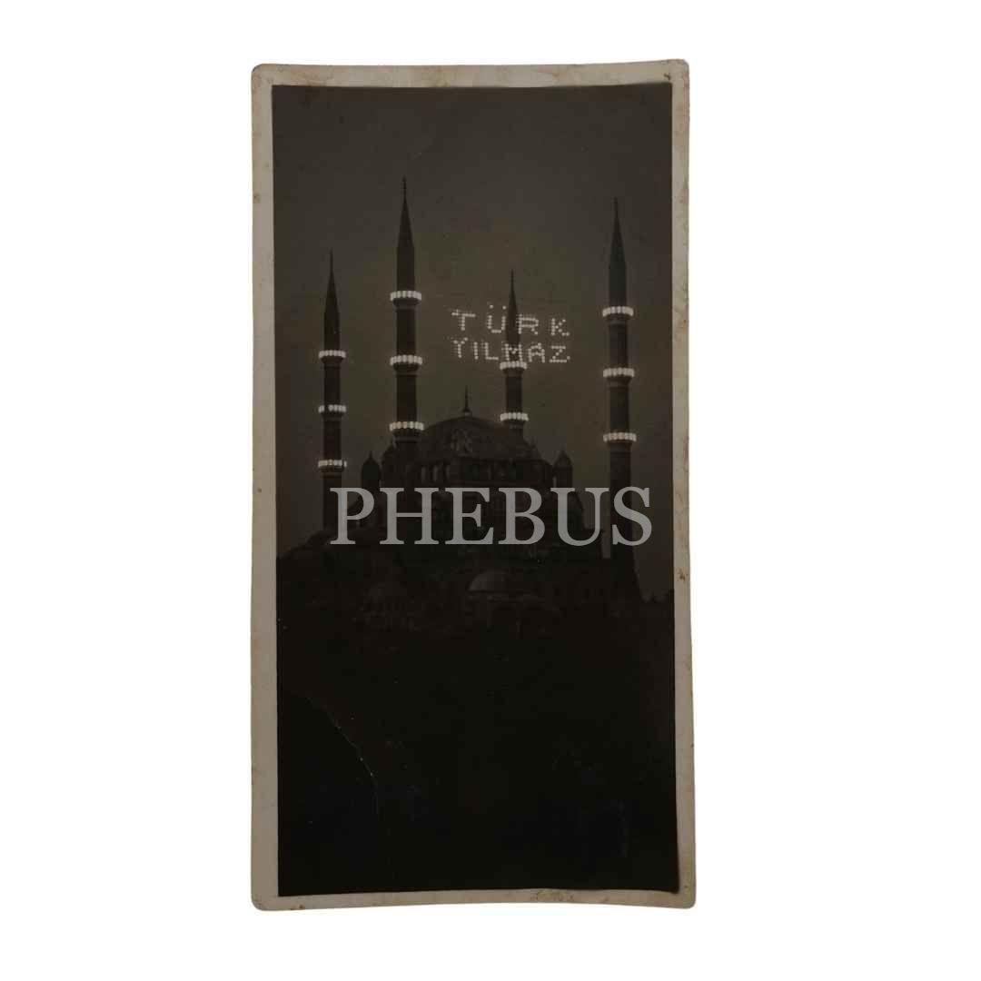 Selimiye Camii ve minareleri arasında "Türk Yılmaz" yazılı mahya, 4x9 cm...