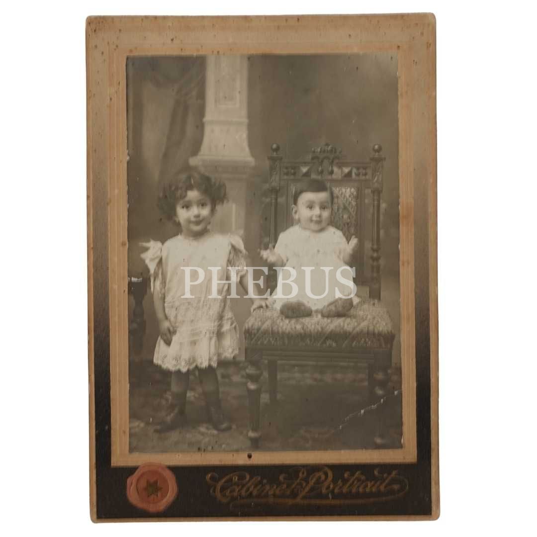 İki küçük kardeşin stüdyo hatıra fotoğrafı, 12x18 cm...