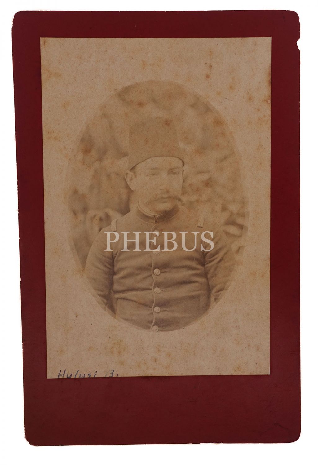 Osmanlı döneminden, bir askeri okul öğrencisinin hatıra fotoğrafı, 11x17 cm...