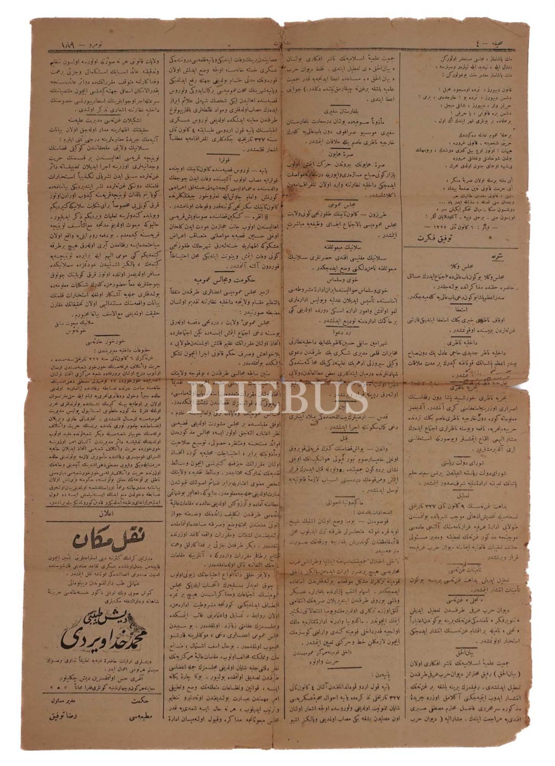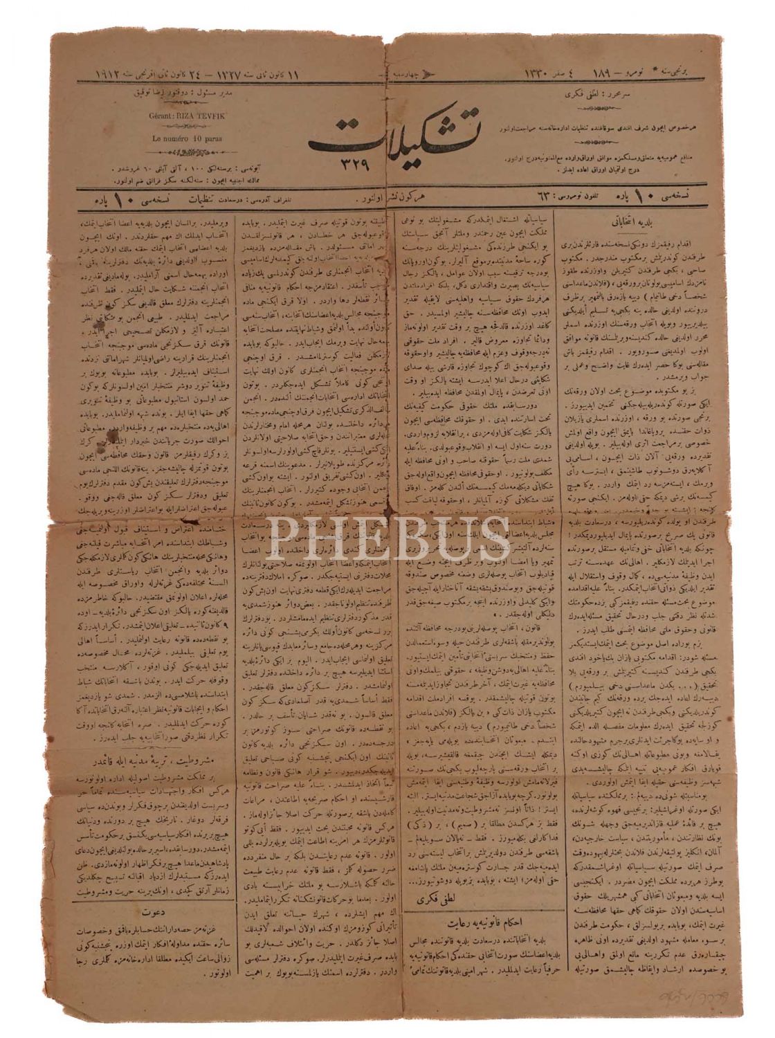 TEŞKİLAT gazetesinin 24 Kanunisani 1912 tarihli nüshası, 49x34 cm...