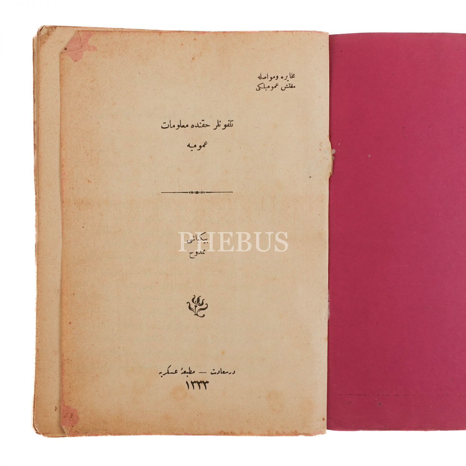 TELEFONLAR HAKKINDA MALUMAT-I UMUMİYE, Memduh, 1333, Muhabere ve Muvasale Kıtatı Müfettiş-i Umumiliği, 231 sayfa, 14x20 cm...