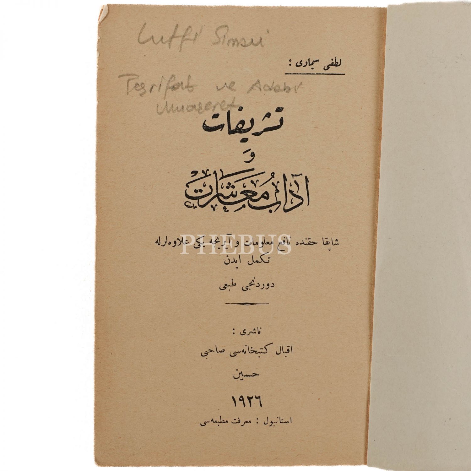 TEŞRİFAT VE ADAB-I MUAŞERET, Lütfü Simavi, 1926, Marifet Matbaası, 66 sayfa, 12x18 cm...