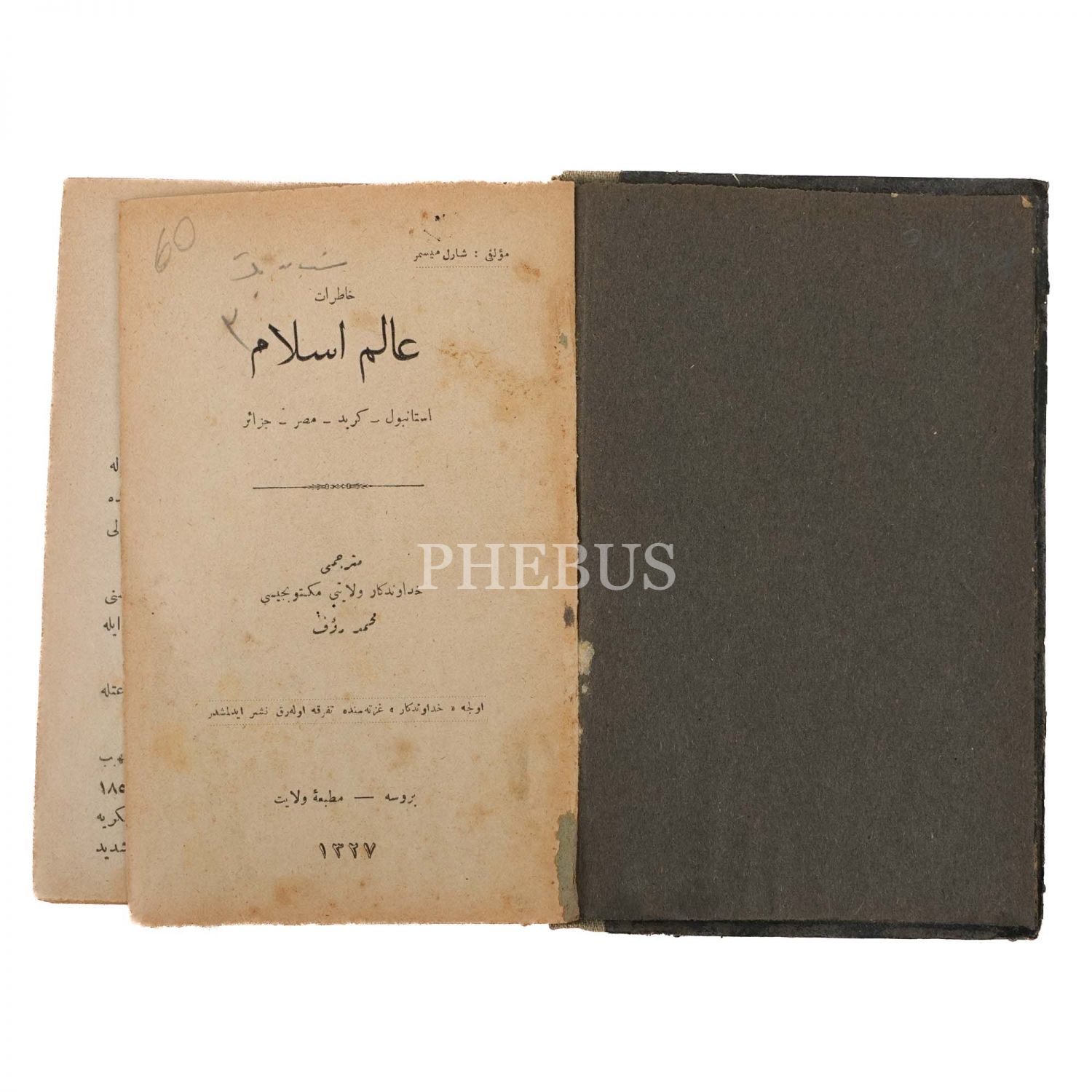HATIRAT: ALEM-İ İSLAM (İstanbul, Girit, Mısır, Cezayir), Charles Mismer, (çeviren: Mehmed Rauf), 1327, Bursa Matbaa-i Vilayet, 304 sayfa, 11x17 cm...