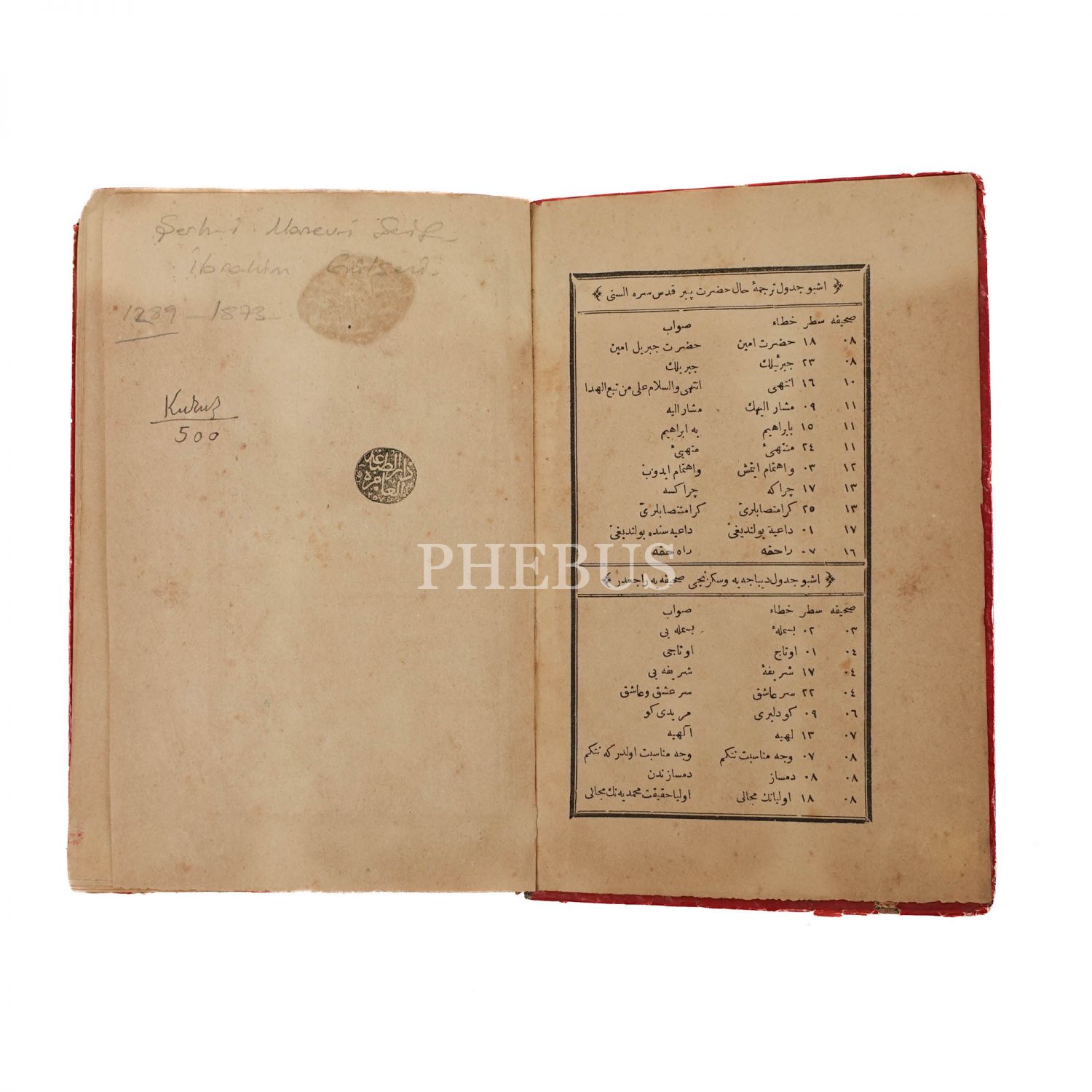 ŞERH-İ MANEVİ-İ ŞERİF, İbrahim Gülşeni, (şerh eden: Mehmed Fenai Lali), Matbaa-i Amire, 168 sayfa, 15x24 cm...
