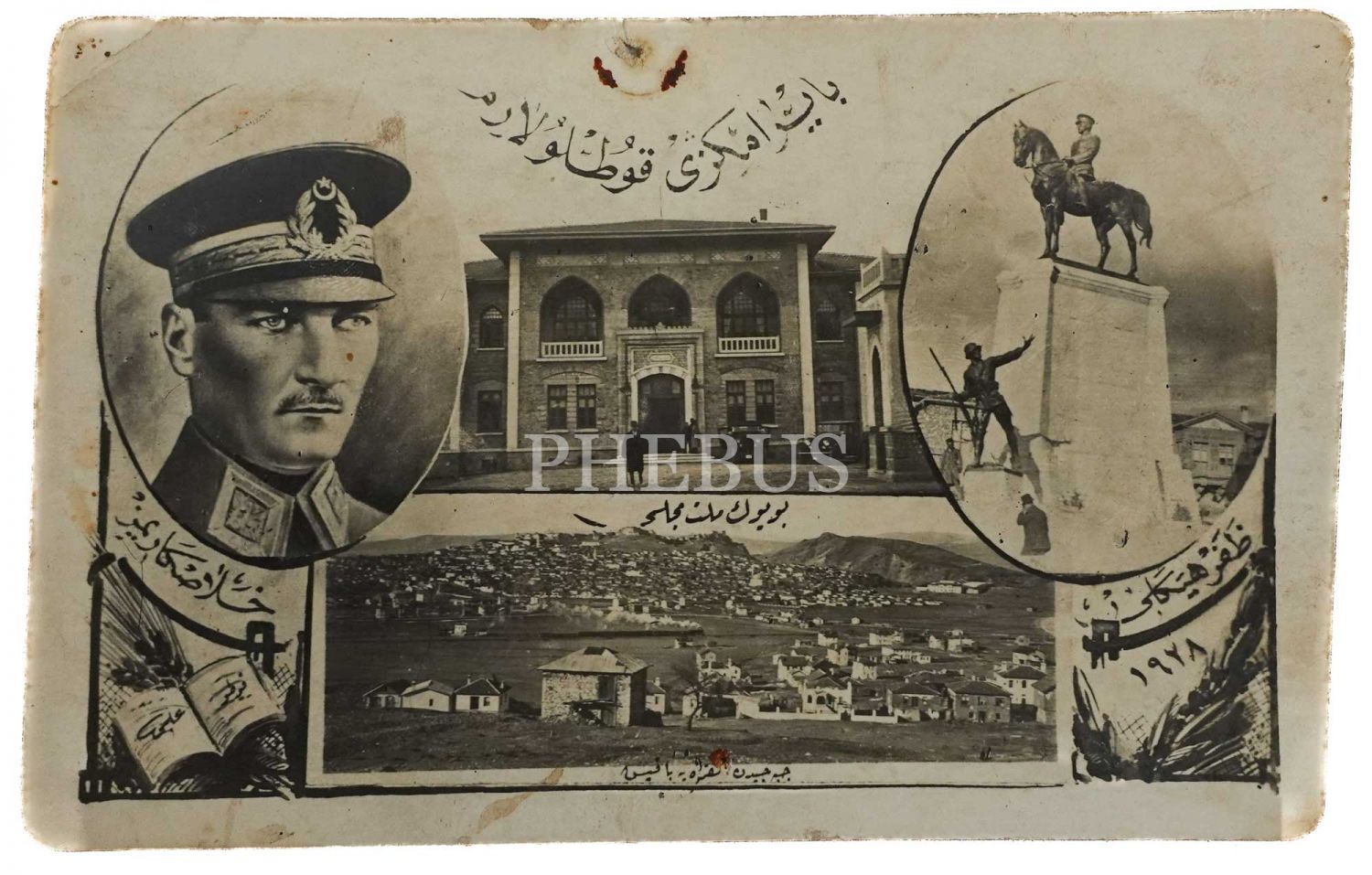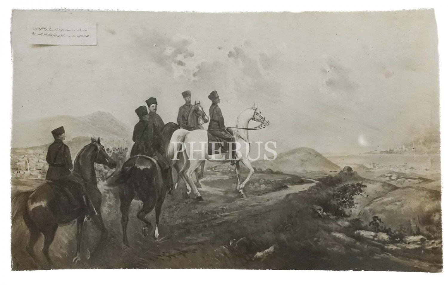 Mustafa Kemal Atatürk ve İsmet İnönü´yü at sırtında hakim bir tepe üzerinden İstanbul´u seyrederken gösteren, Cumhuriyet dönemi ressamlarından bir ressamın yağlı boya tablosundan hazırlanan kartpostal, 14x9 cm...